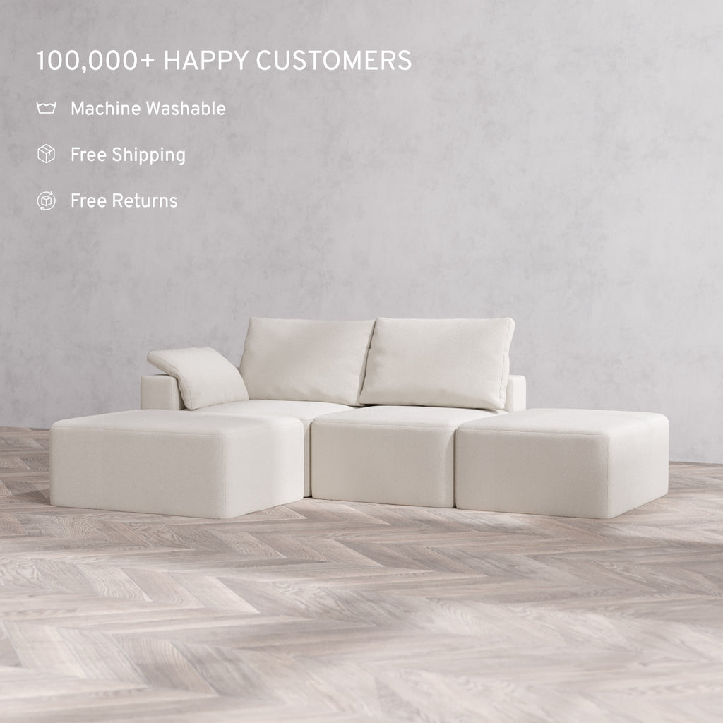 Machine Washable: Every piece of fabric—including the internal quilted duvet—is fully removable and machine washable. It’s the only Cloud-style sofa you can truly deep clean, effortlessly.