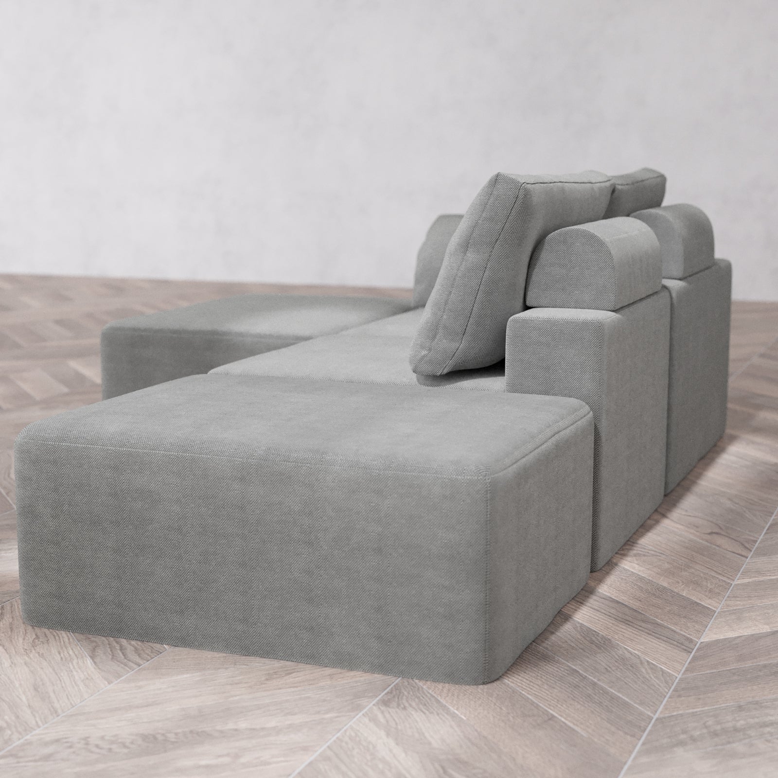 Slipcover Only - Modular Washable 2-Seater Open End Chaise Sectional Cloud + Bolster Sofa in Slate | Left-Facing Arm