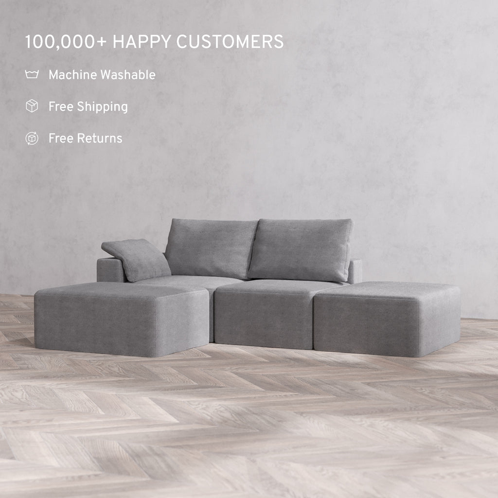 Machine Washable: Every piece of fabric—including the internal quilted duvet—is fully removable and machine washable. It’s the only Cloud-style sofa you can truly deep clean, effortlessly.