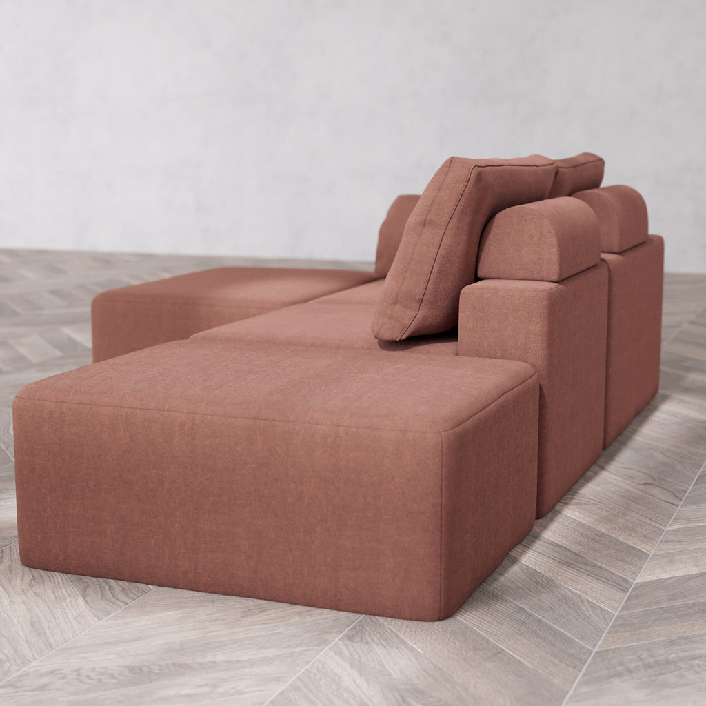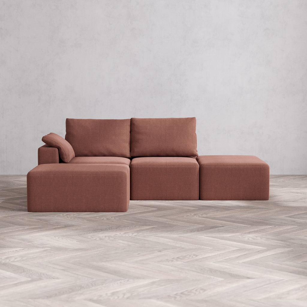 Slipcover Only - Modular Washable 2-Seater Open End Chaise Sectional Cloud + Bolster Sofa in Sumac | Left-Facing Arm