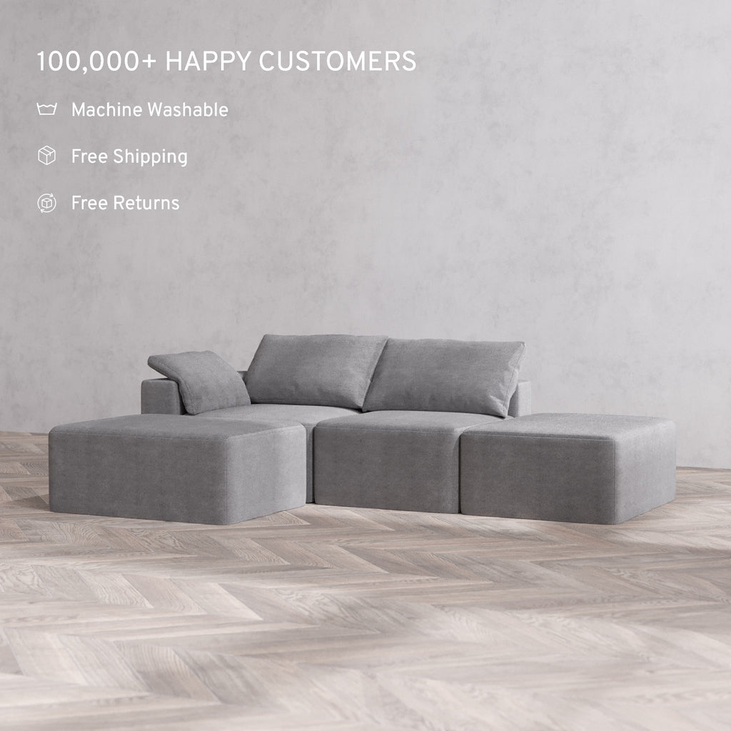 Machine Washable: Every piece of fabric—including the internal quilted duvet—is fully removable and machine washable. It’s the only Cloud-style sofa you can truly deep clean, effortlessly.