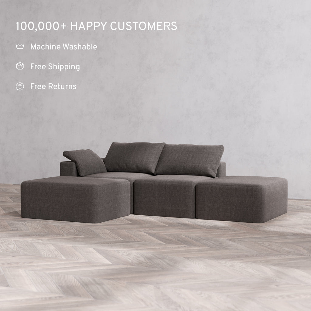 Machine Washable: Every piece of fabric—including the internal quilted duvet—is fully removable and machine washable. It’s the only Cloud-style sofa you can truly deep clean, effortlessly.