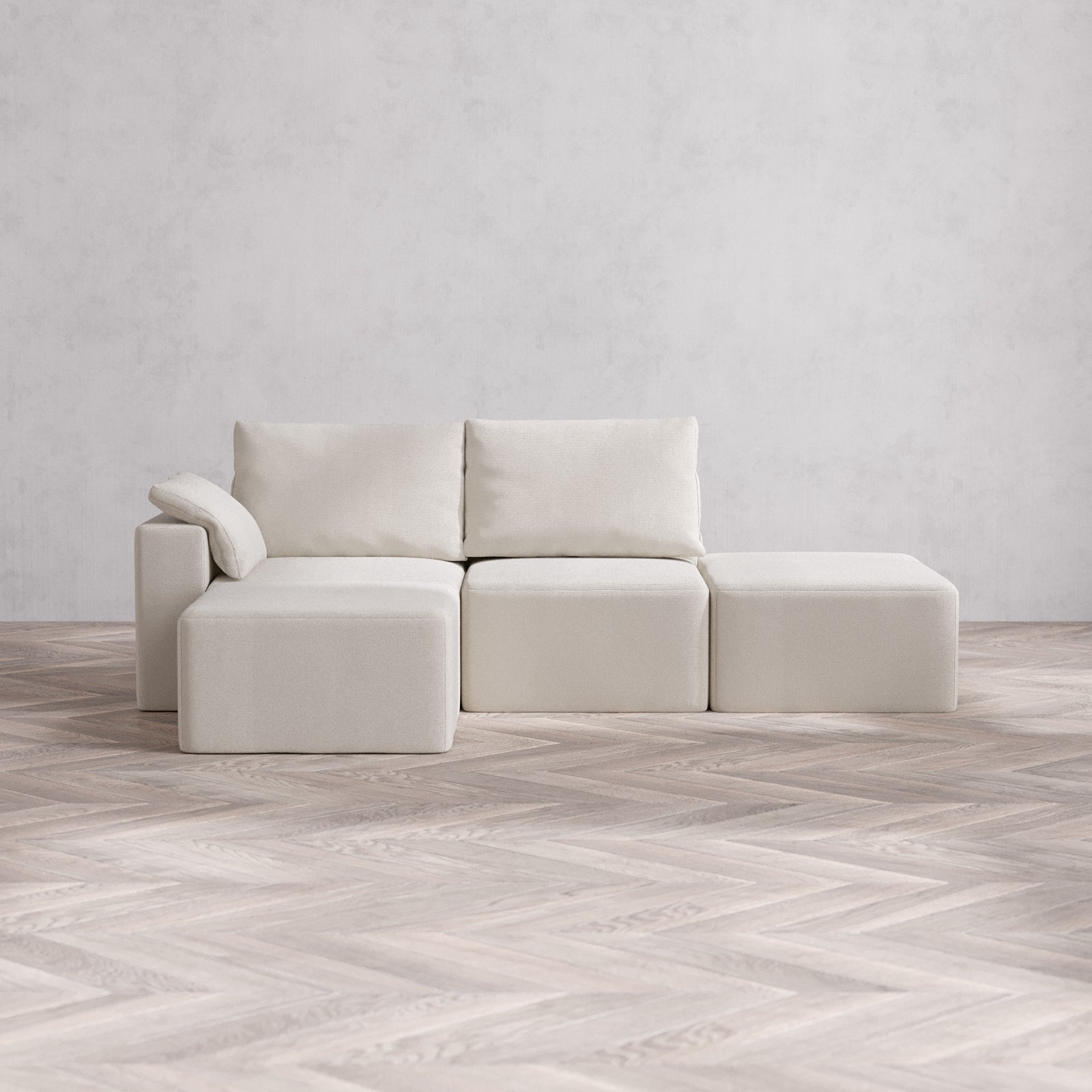 Slipcover Only - Modular Washable 2-Seater Open End Sectional Cloud + Bolster Sofa in Pearl | Left-Facing Arm