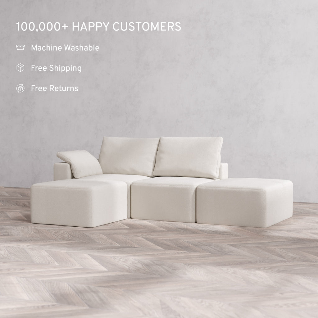 Machine Washable: Every piece of fabric—including the internal quilted duvet—is fully removable and machine washable. It’s the only Cloud-style sofa you can truly deep clean, effortlessly.