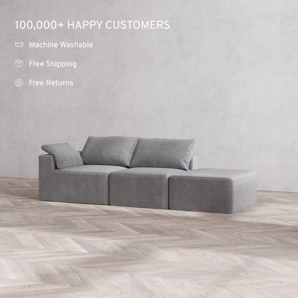 Machine Washable: Every piece of fabric—including the internal quilted duvet—is fully removable and machine washable. It’s the only Cloud-style sofa you can truly deep clean, effortlessly.