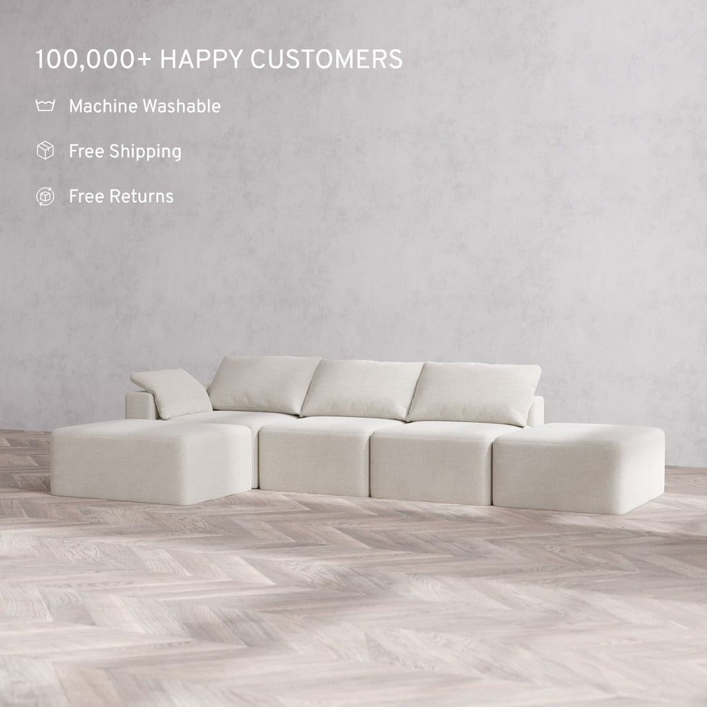 Machine Washable: Every piece of fabric—including the internal quilted duvet—is fully removable and machine washable. It’s the only Cloud-style sofa you can truly deep clean, effortlessly.