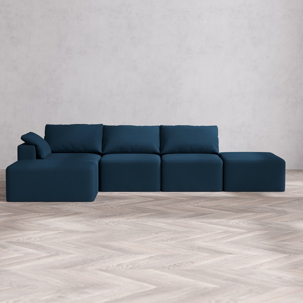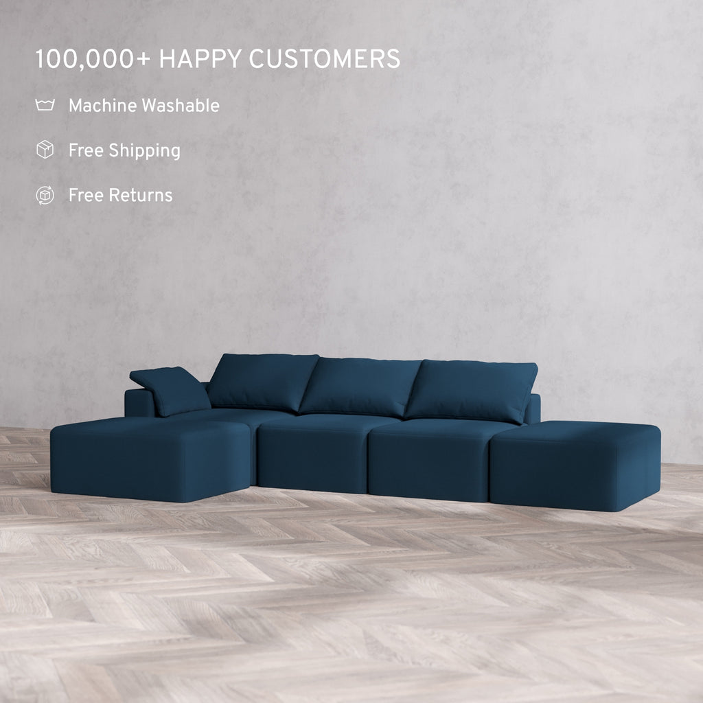 Slipcover Only - Modular Washable 3-Seater Open End Chaise Sectional Cloud Sofa in Lazuli | Left-Facing Arm