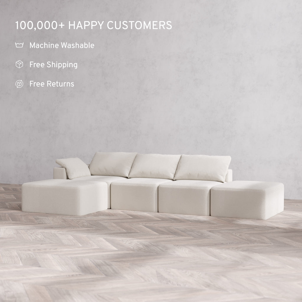 Machine Washable: Every piece of fabric—including the internal quilted duvet—is fully removable and machine washable. It’s the only Cloud-style sofa you can truly deep clean, effortlessly.