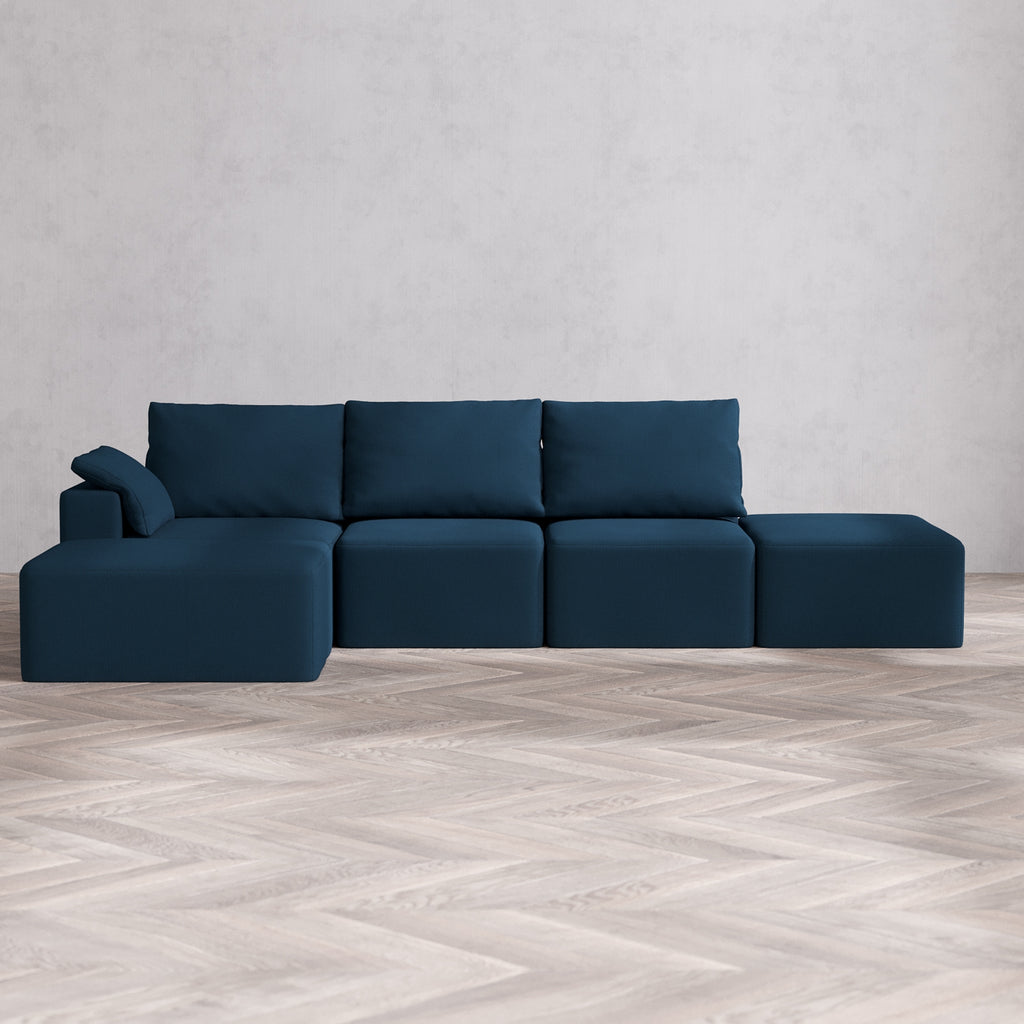 Slipcover Only - Modular Washable 3-Seater Open End Chaise Sectional Cloud + Bolster Sofa in Lazuli | Left-Facing Arm