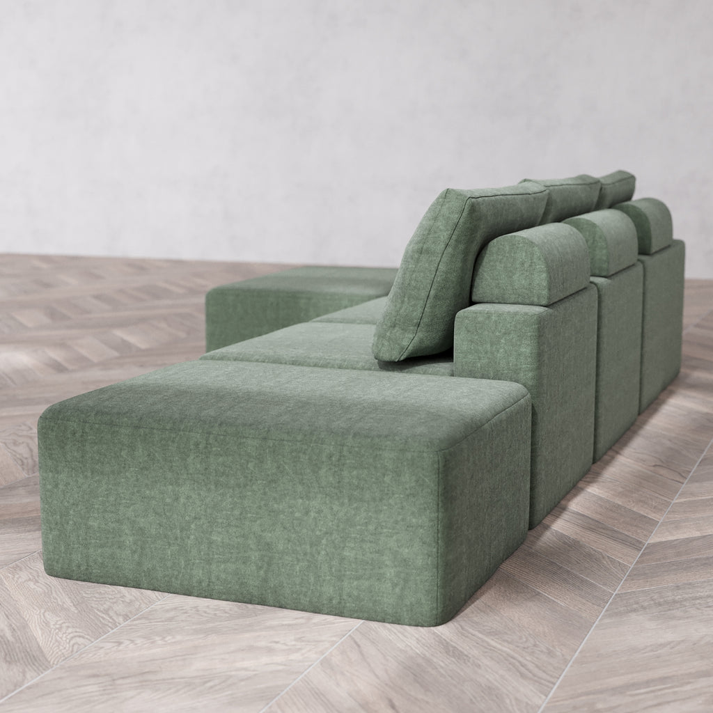 Slipcover Only - Modular Washable 3-Seater Open End Chaise Sectional Cloud + Bolster Sofa in Sage | Left-Facing Arm