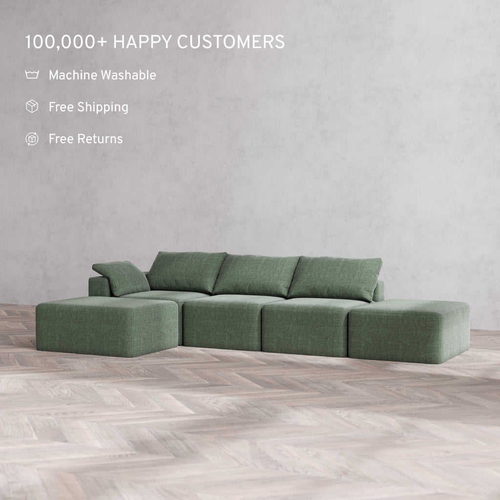 Machine Washable: Every piece of fabric—including the internal quilted duvet—is fully removable and machine washable. It’s the only Cloud-style sofa you can truly deep clean, effortlessly.
