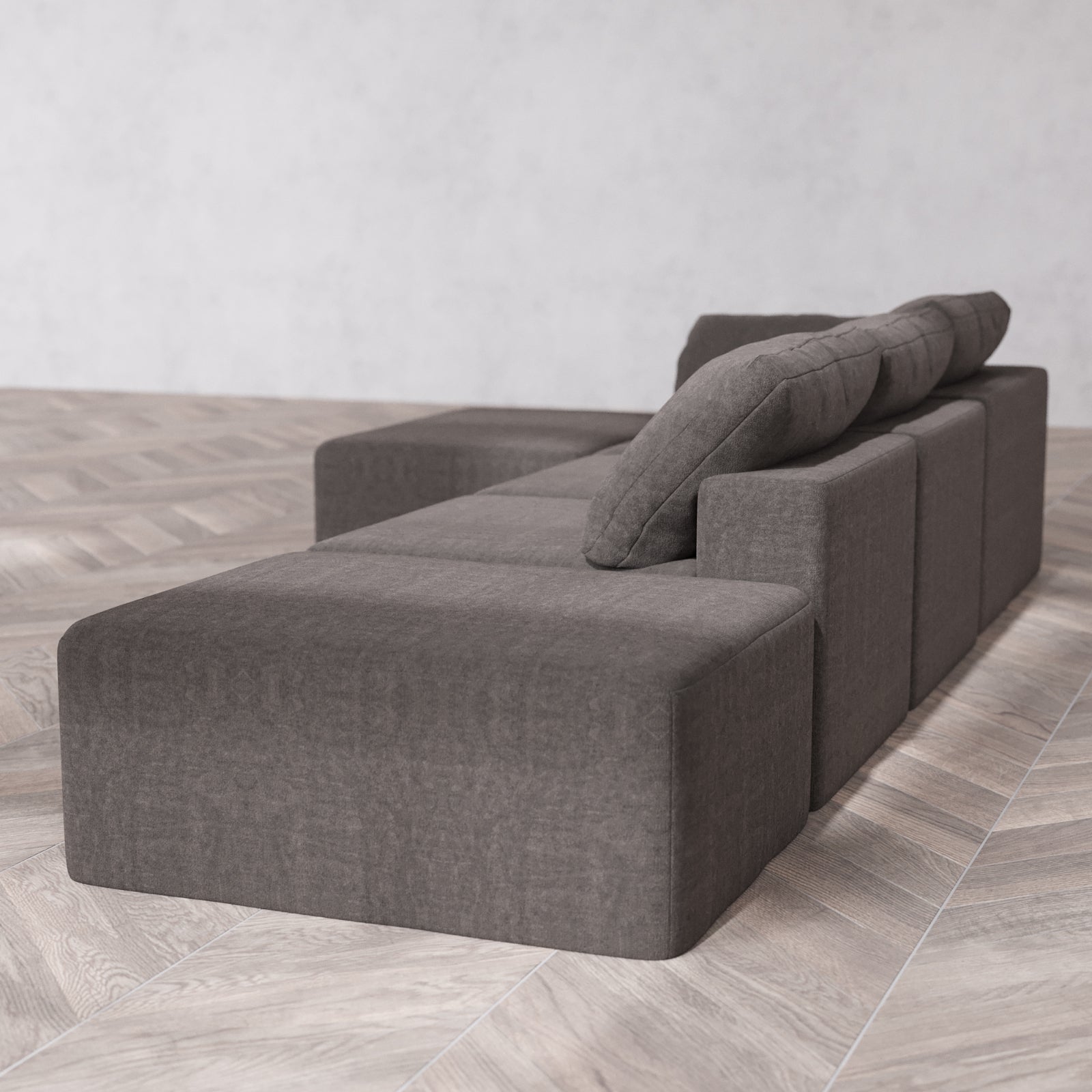 Slipcover Only - Modular Washable 3-Seater Open End Chaise Sectional Cloud Sofa in Truffle | Left-Facing Arm