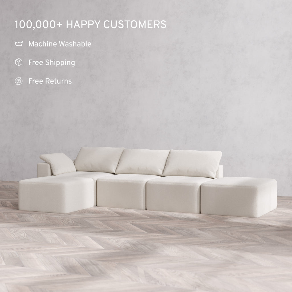 Machine Washable: Every piece of fabric—including the internal quilted duvet—is fully removable and machine washable. It’s the only Cloud-style sofa you can truly deep clean, effortlessly.