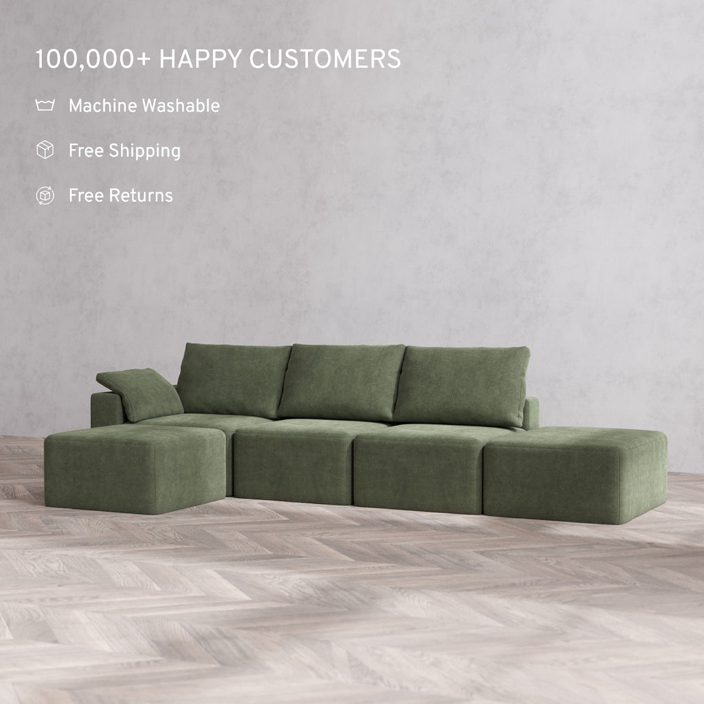 Machine Washable: Every piece of fabric—including the internal quilted duvet—is fully removable and machine washable. It’s the only Cloud-style sofa you can truly deep clean, effortlessly.