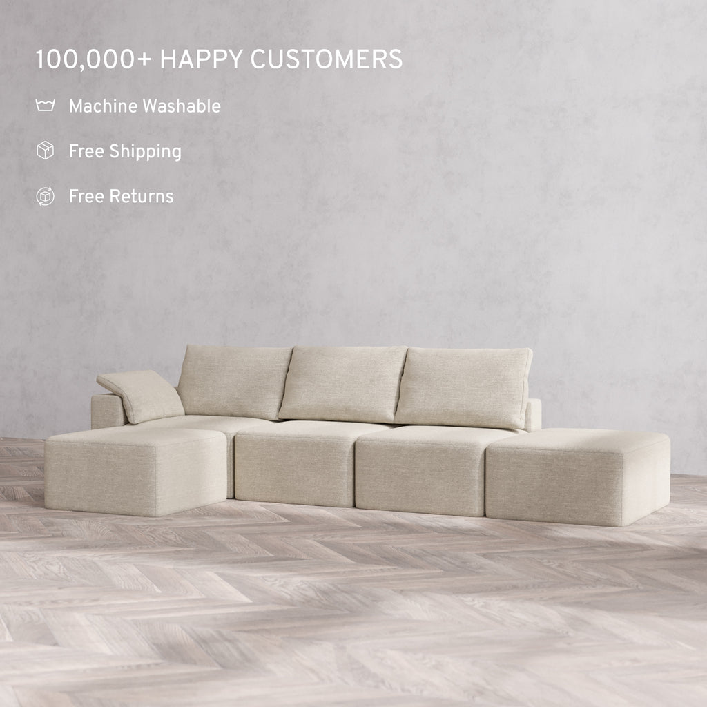 Machine Washable: Every piece of fabric—including the internal quilted duvet—is fully removable and machine washable. It’s the only Cloud-style sofa you can truly deep clean, effortlessly.