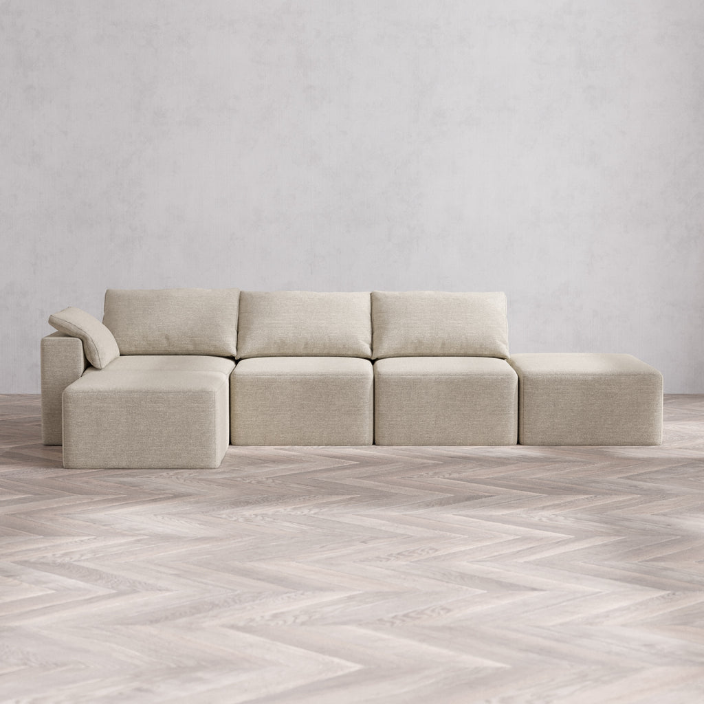Slipcover Only - Modular Washable 3-Seater Open End Sectional Cloud Sofa in Sandstone | Left-Facing Arm