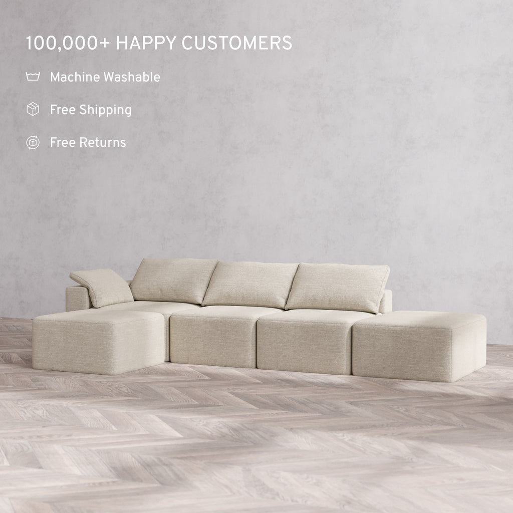 Machine Washable: Every piece of fabric—including the internal quilted duvet—is fully removable and machine washable. It’s the only Cloud-style sofa you can truly deep clean, effortlessly.