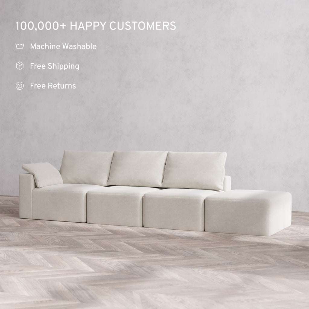 Machine Washable: Every piece of fabric—including the internal quilted duvet—is fully removable and machine washable. It’s the only Cloud-style sofa you can truly deep clean, effortlessly.