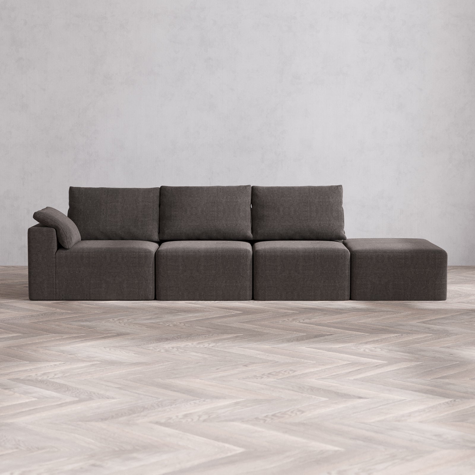 Slipcover Only - Modular Washable 3-Seater Open End Cloud + Bolster Sofa in Truffle | Left-Facing Arm
