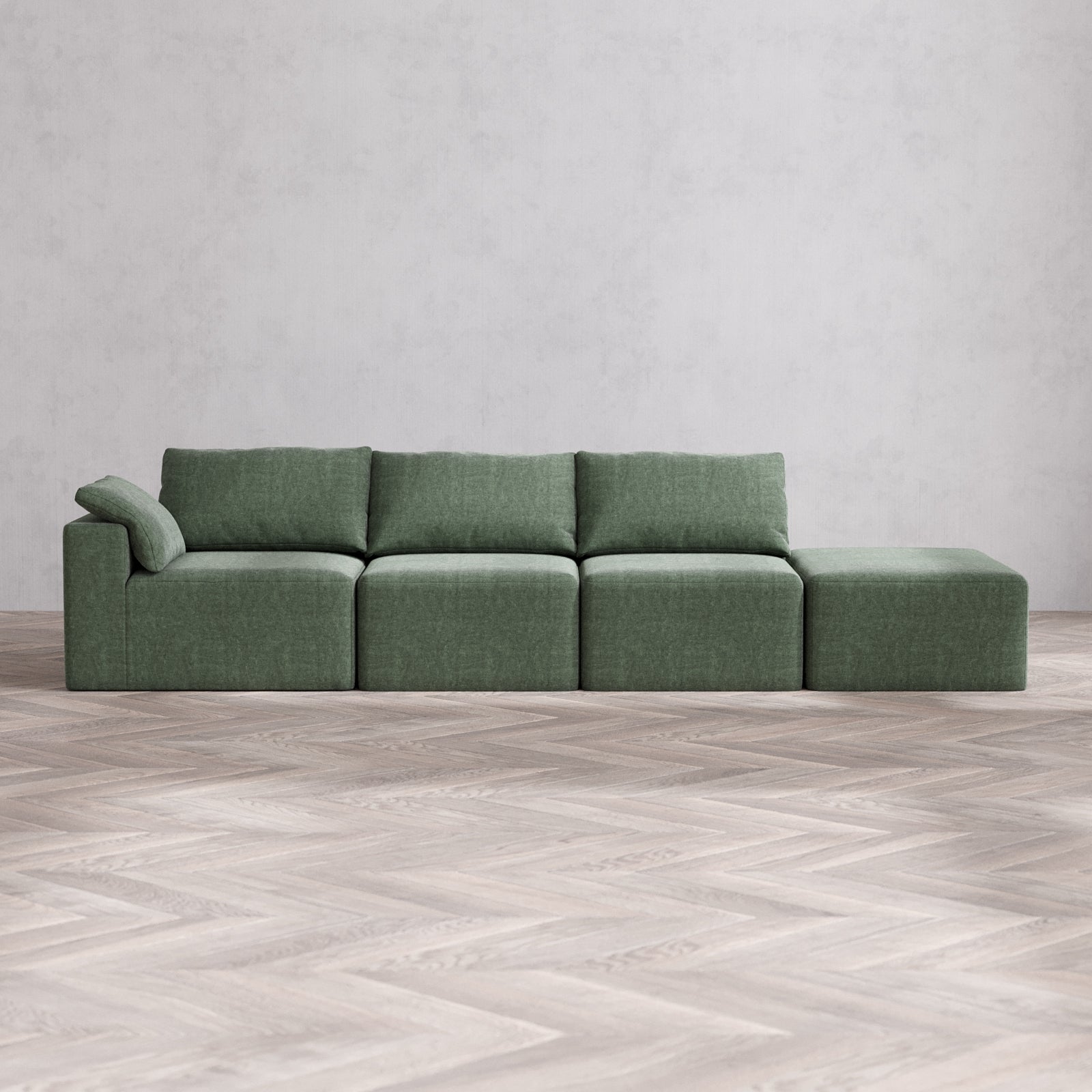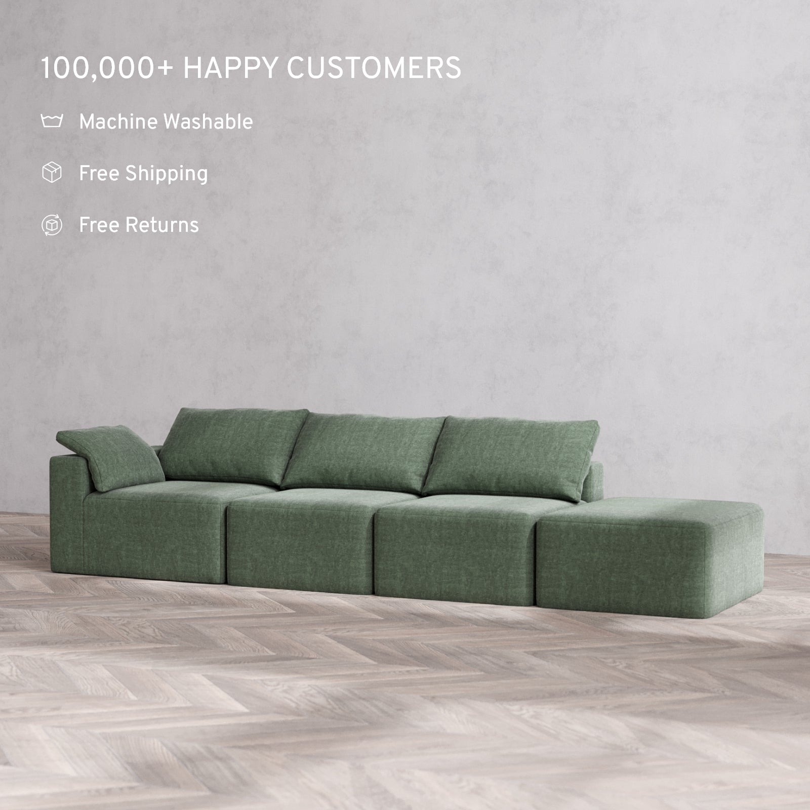 Slipcover Only - Modular Washable 3-Seater Open End Cloud Sofa in Sage | Left-Facing Arm