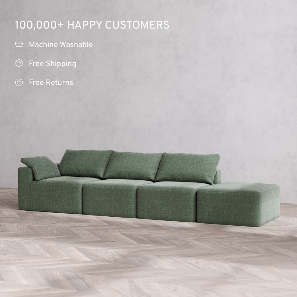 Machine Washable: Every piece of fabric—including the internal quilted duvet—is fully removable and machine washable. It’s the only Cloud-style sofa you can truly deep clean, effortlessly.