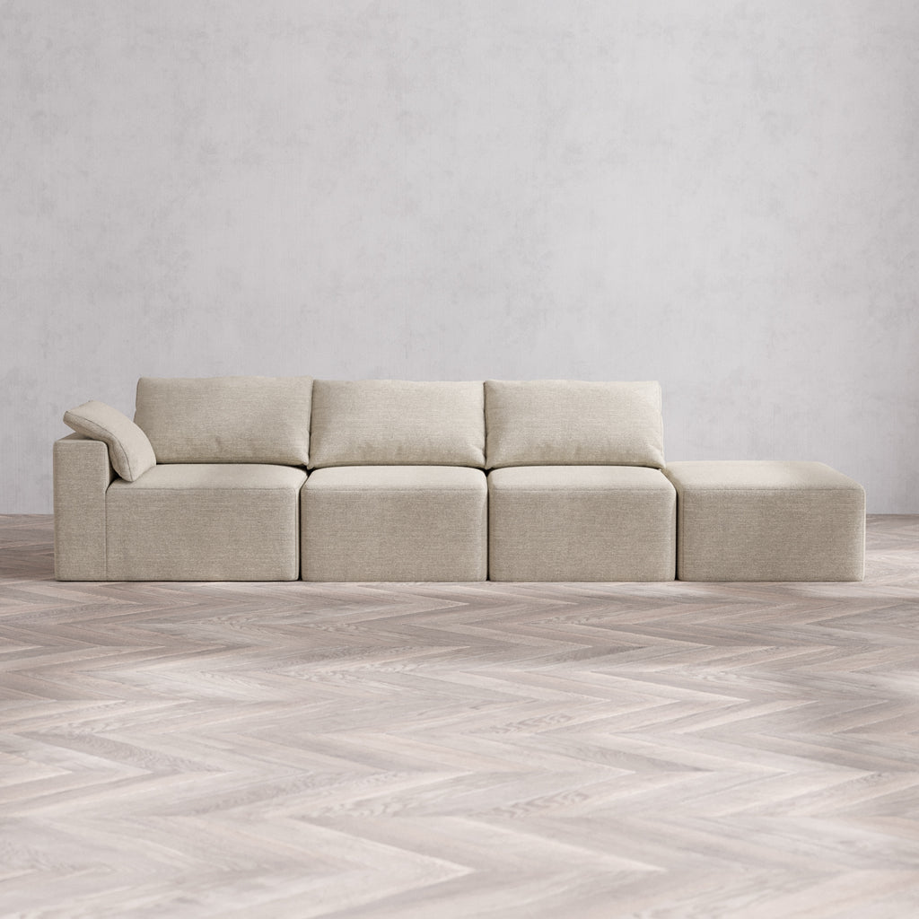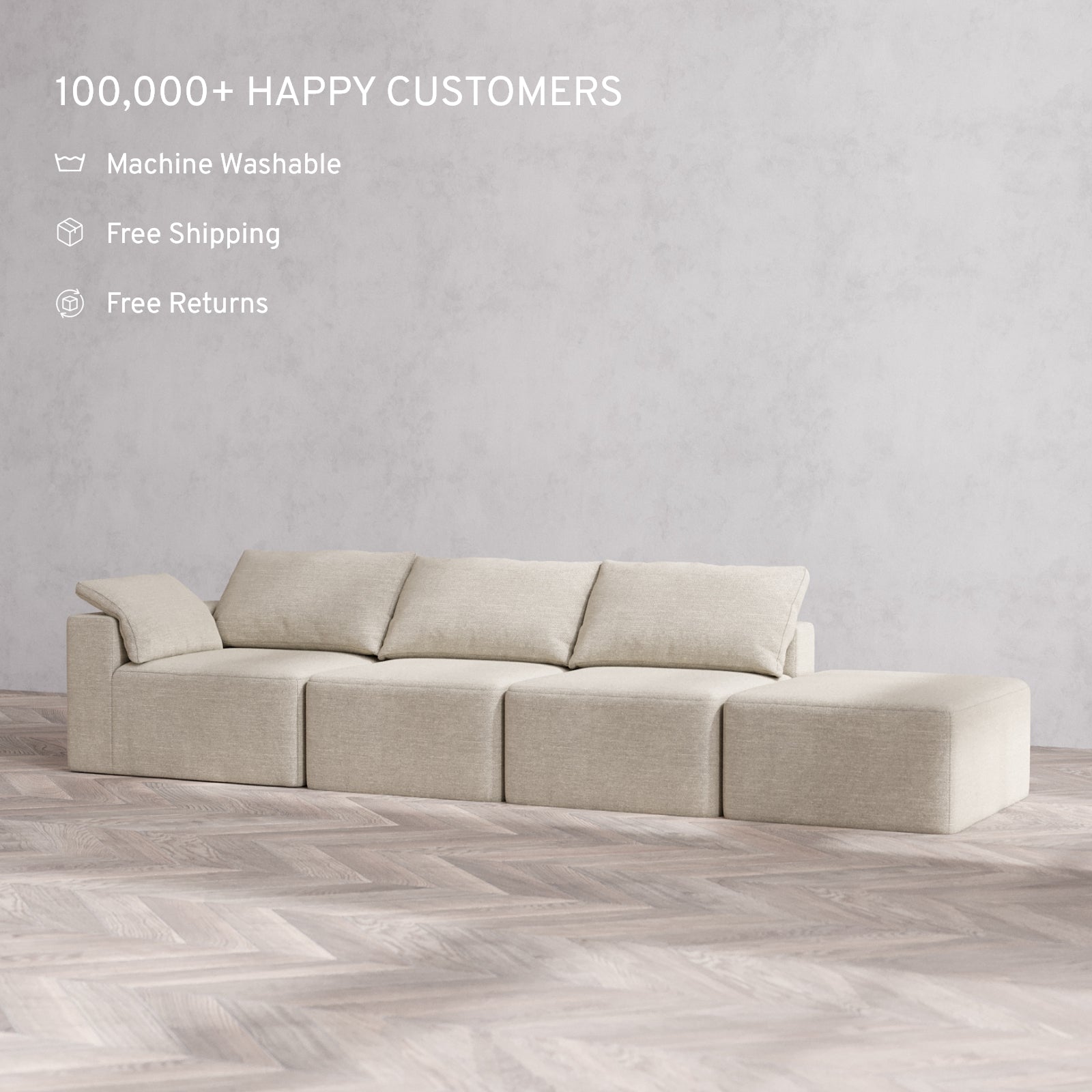Slipcover Only - Modular Washable 3-Seater Open End Cloud Sofa in Sandstone | Left-Facing Arm