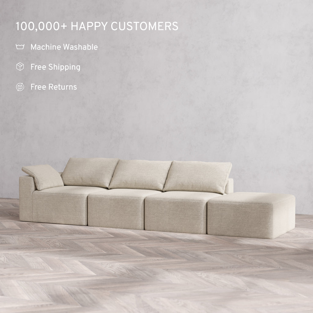 Machine Washable: Every piece of fabric—including the internal quilted duvet—is fully removable and machine washable. It’s the only Cloud-style sofa you can truly deep clean, effortlessly.