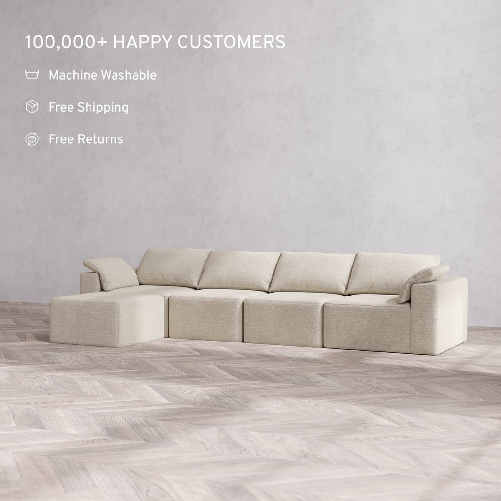 Slipcover Only - Modular Washable 4-Seater Sectional Cloud Sofa in Sandstone