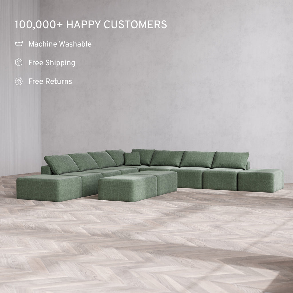 Slipcover Only - Modular Washable 9-Seater Open-Ends Corner Sectional + Chaise Ottoman Bench Cloud Sofa in Sage