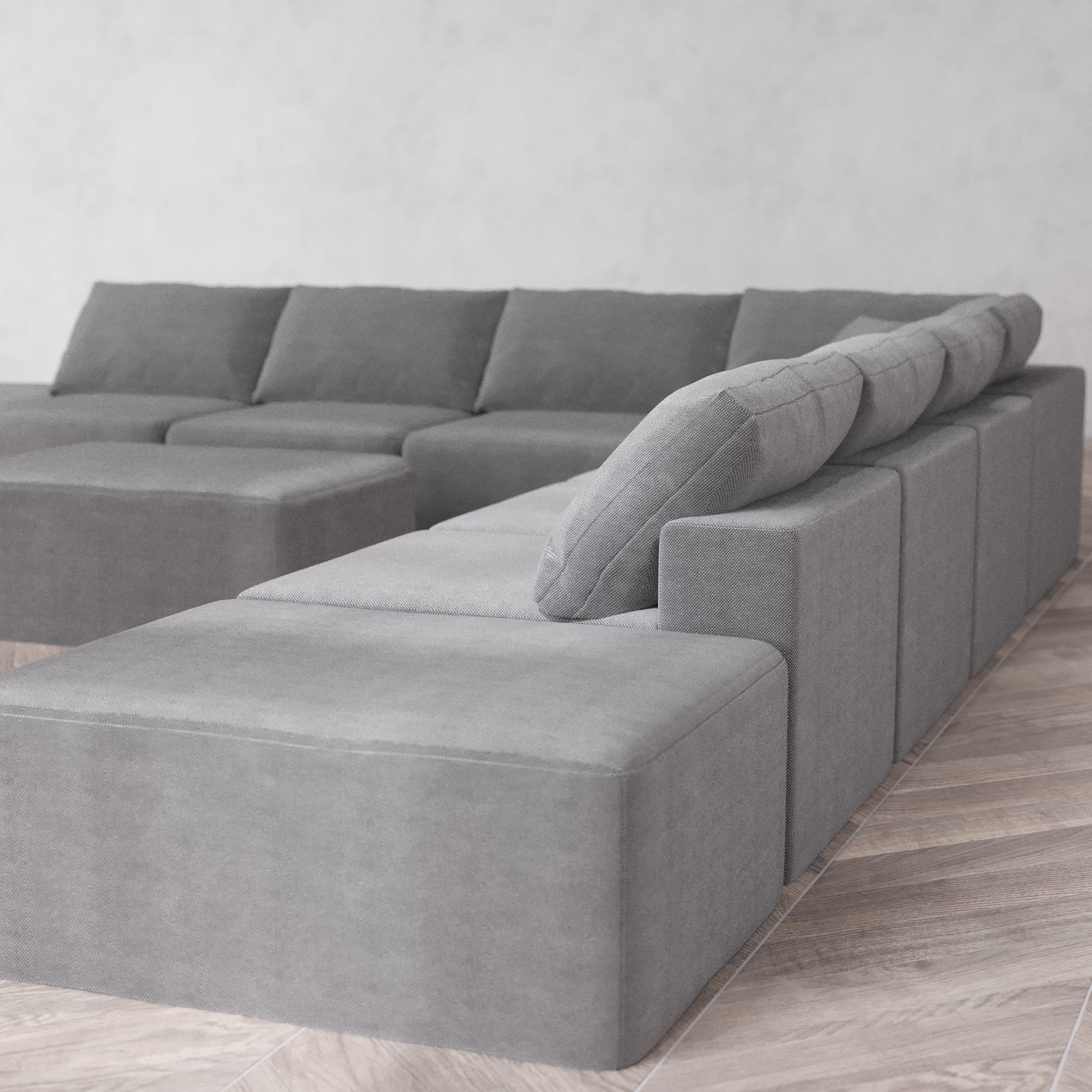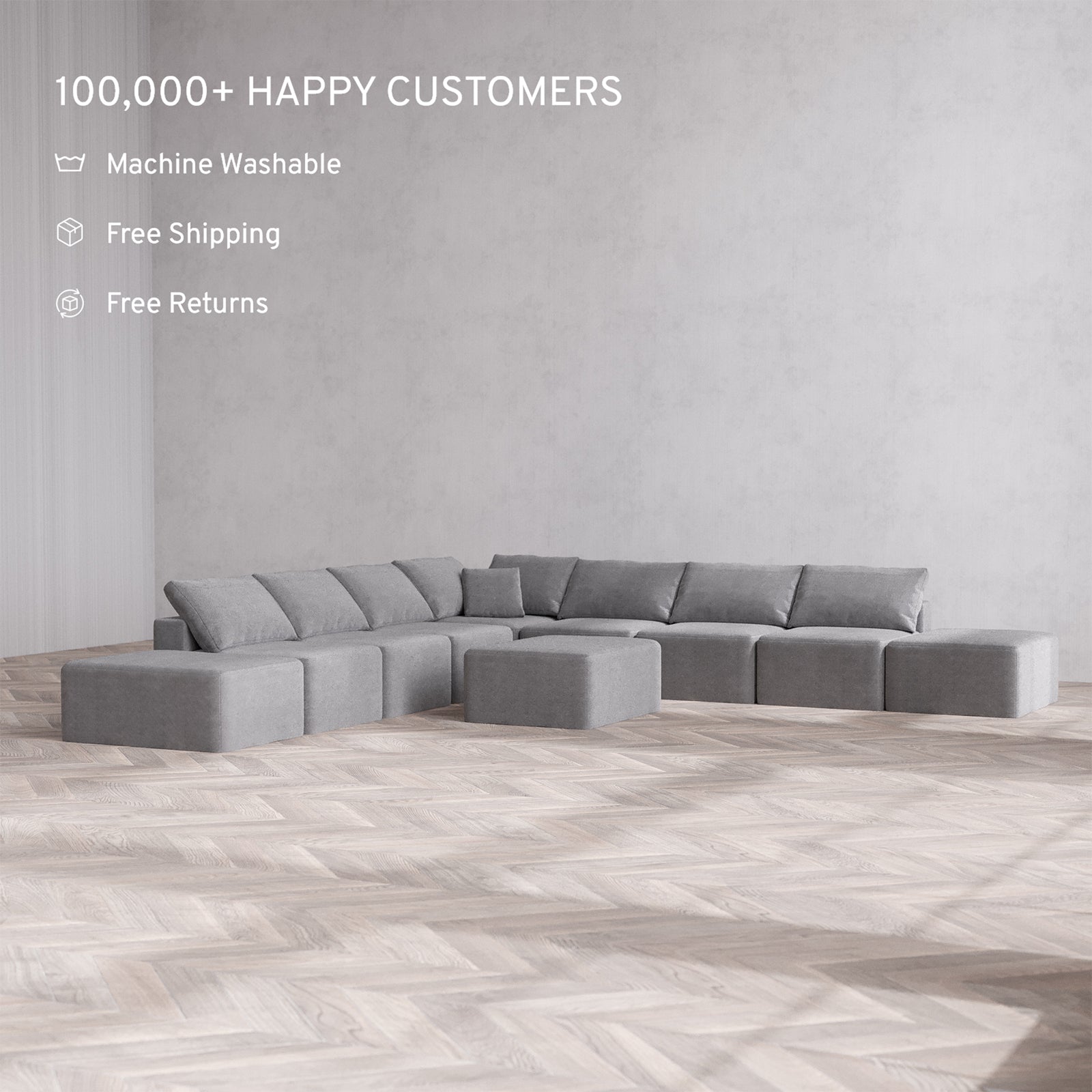 Slipcover Only - Modular Washable 9-Seater Open-Ends Corner Sectional + Chaise Ottoman Cloud Sofa in Slate