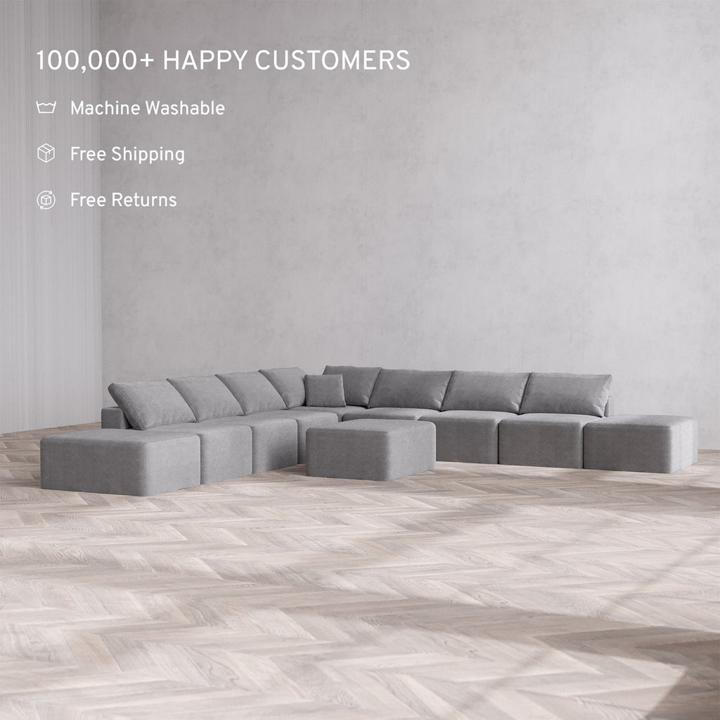 Machine Washable: Every piece of fabric—including the internal quilted duvet—is fully removable and machine washable. It’s the only Cloud-style sofa you can truly deep clean, effortlessly.