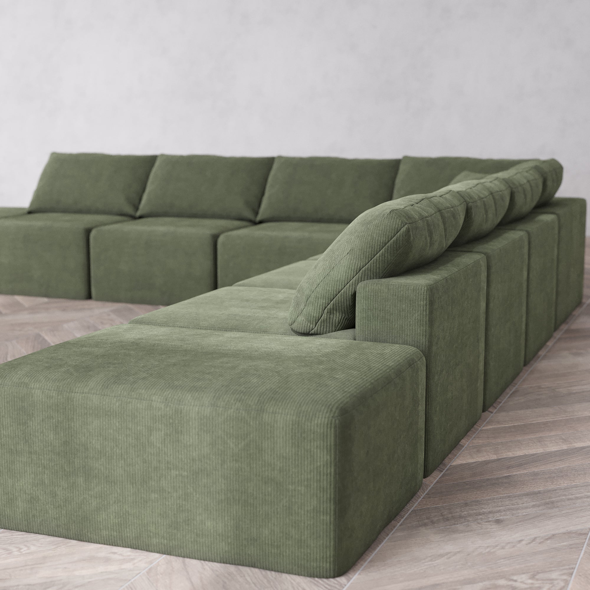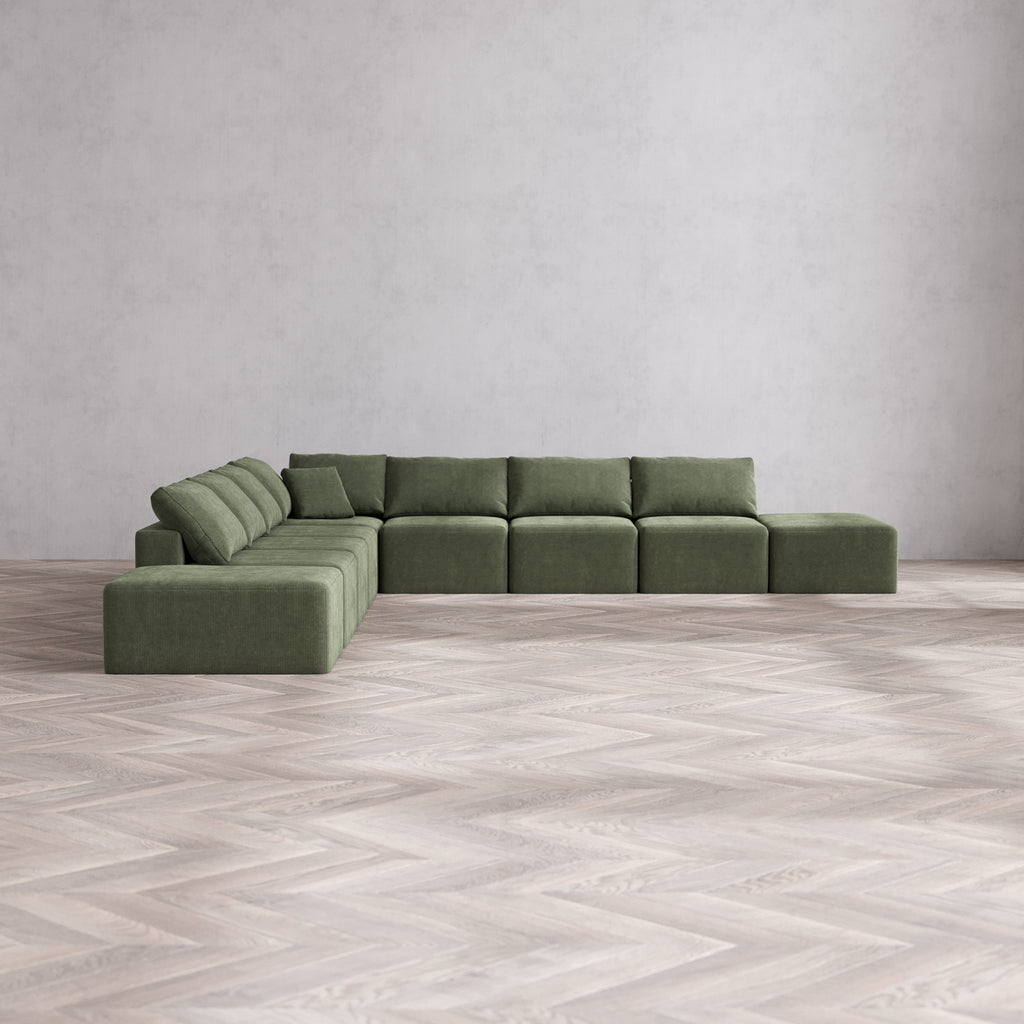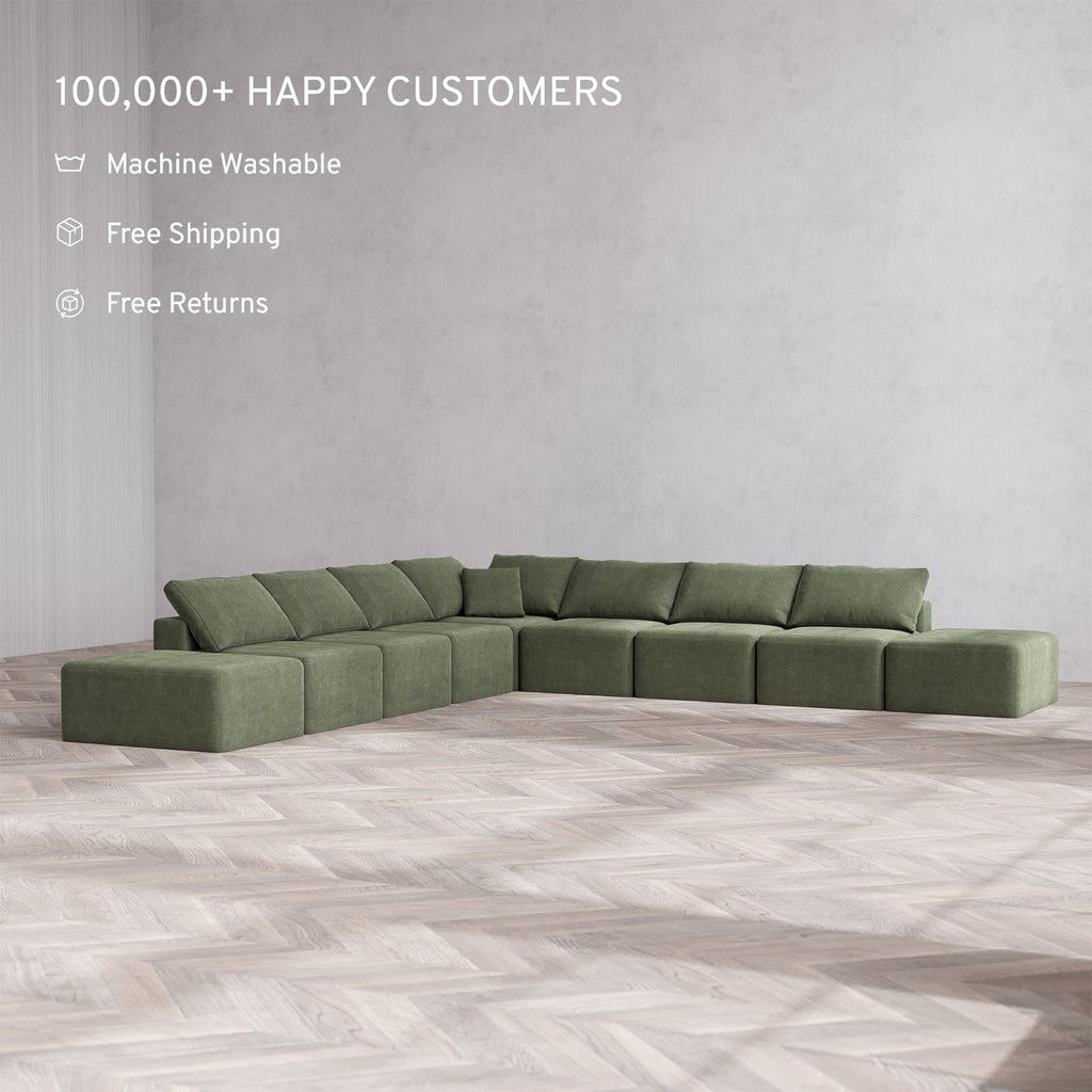 Slipcover Only - Modular Washable 9-Seater Open-Ends Corner Sectional Cloud Sofa in Juniper