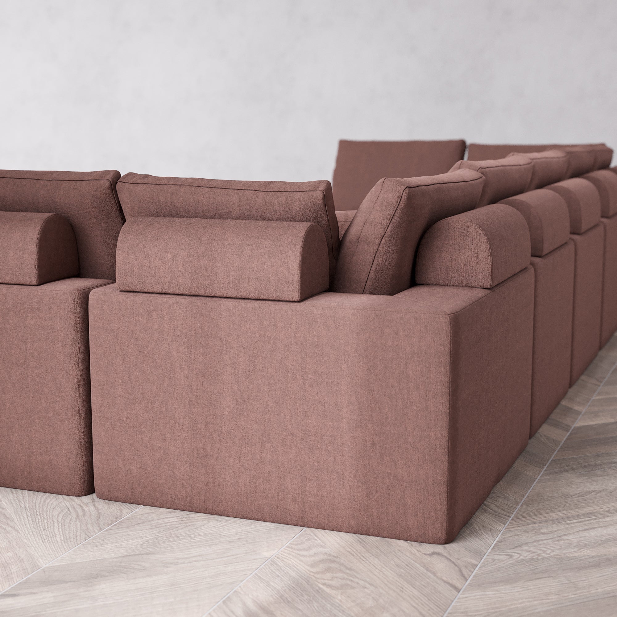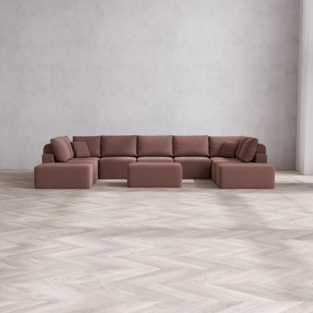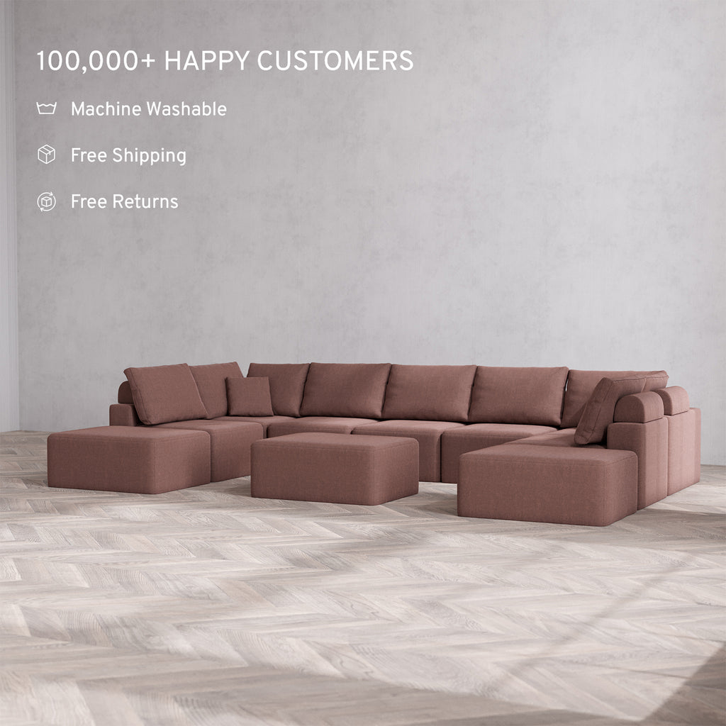 Slipcover Only - Modular Washable 9-Seater Open-Ends U Sectional + Chaise Ottoman Cloud + Bolster Sofa in Sumac