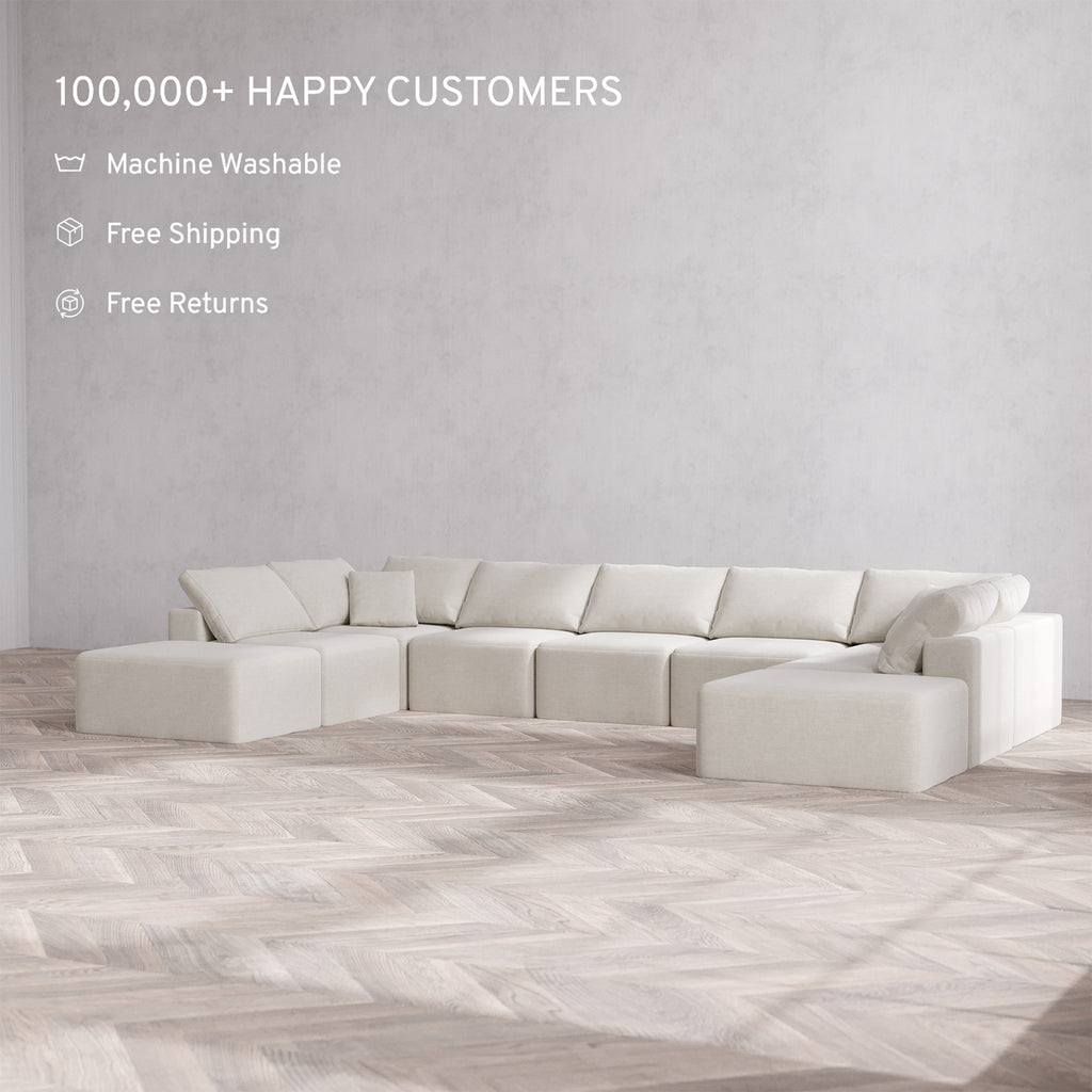Machine Washable: Every piece of fabric—including the internal quilted duvet—is fully removable and machine washable. It’s the only Cloud-style sofa you can truly deep clean, effortlessly.