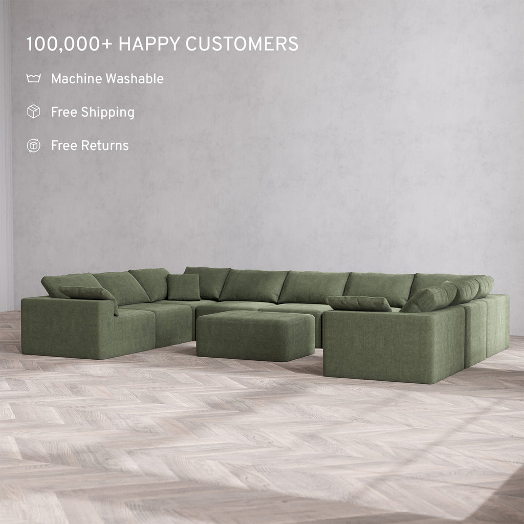 Slipcover Only - Modular Washable 9-Seater U Sectional + Chaise Ottoman Cloud Sofa in Juniper