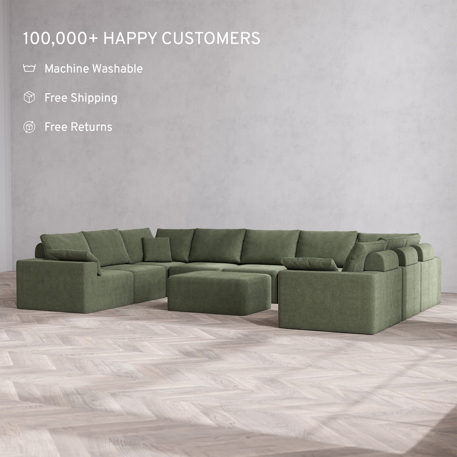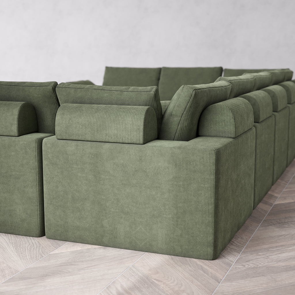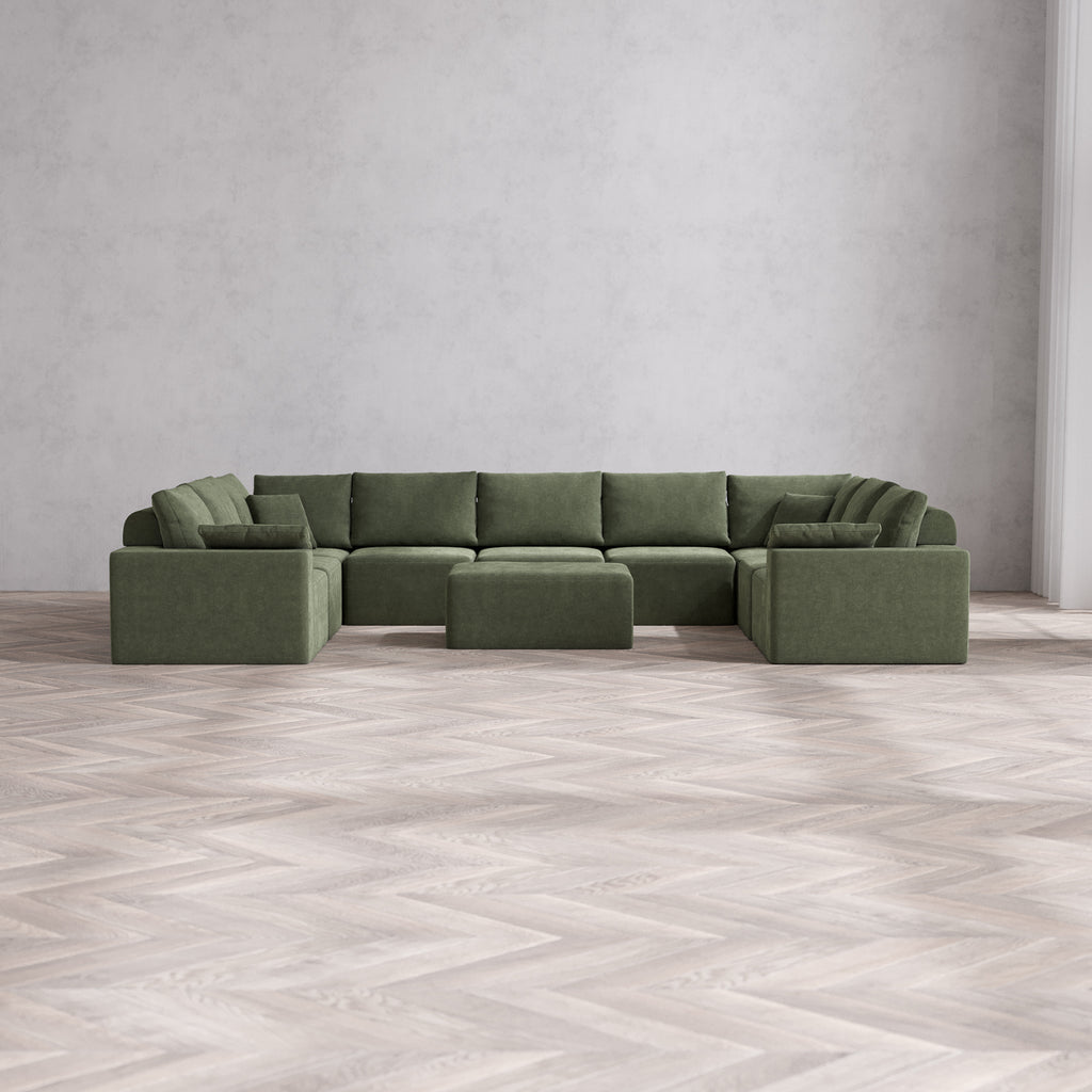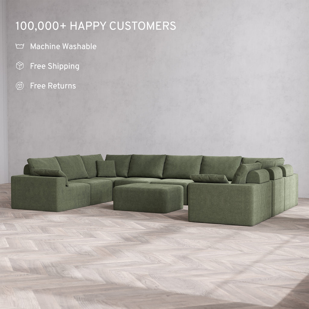 Slipcover Only - Modular Washable 9-Seater U Sectional + Chaise Ottoman Cloud + Bolster Sofa in Juniper