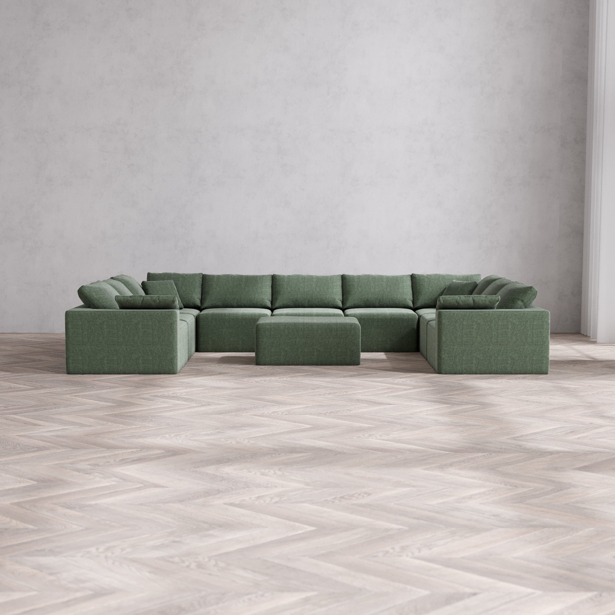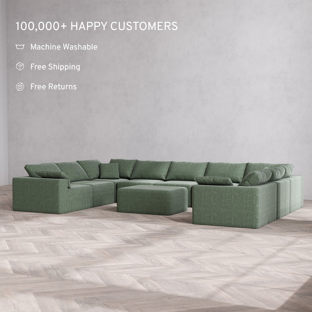 Slipcover Only - Modular Washable 9-Seater U Sectional + Chaise Ottoman Cloud Sofa in Sage