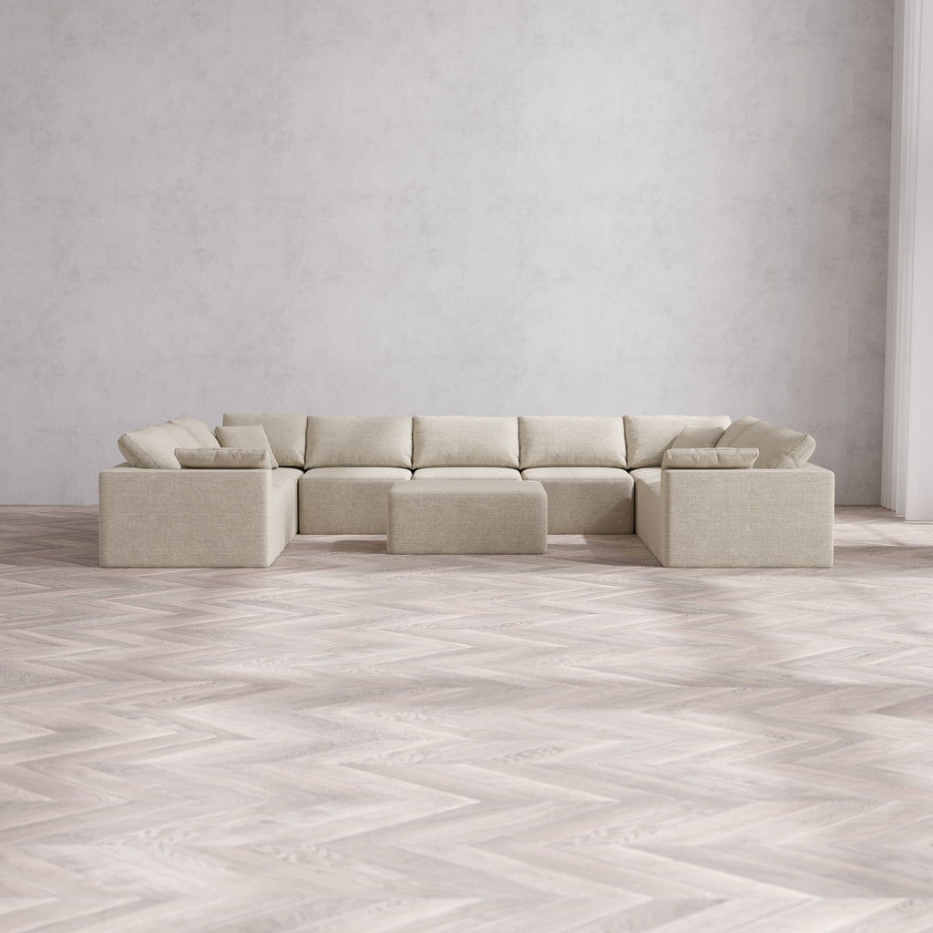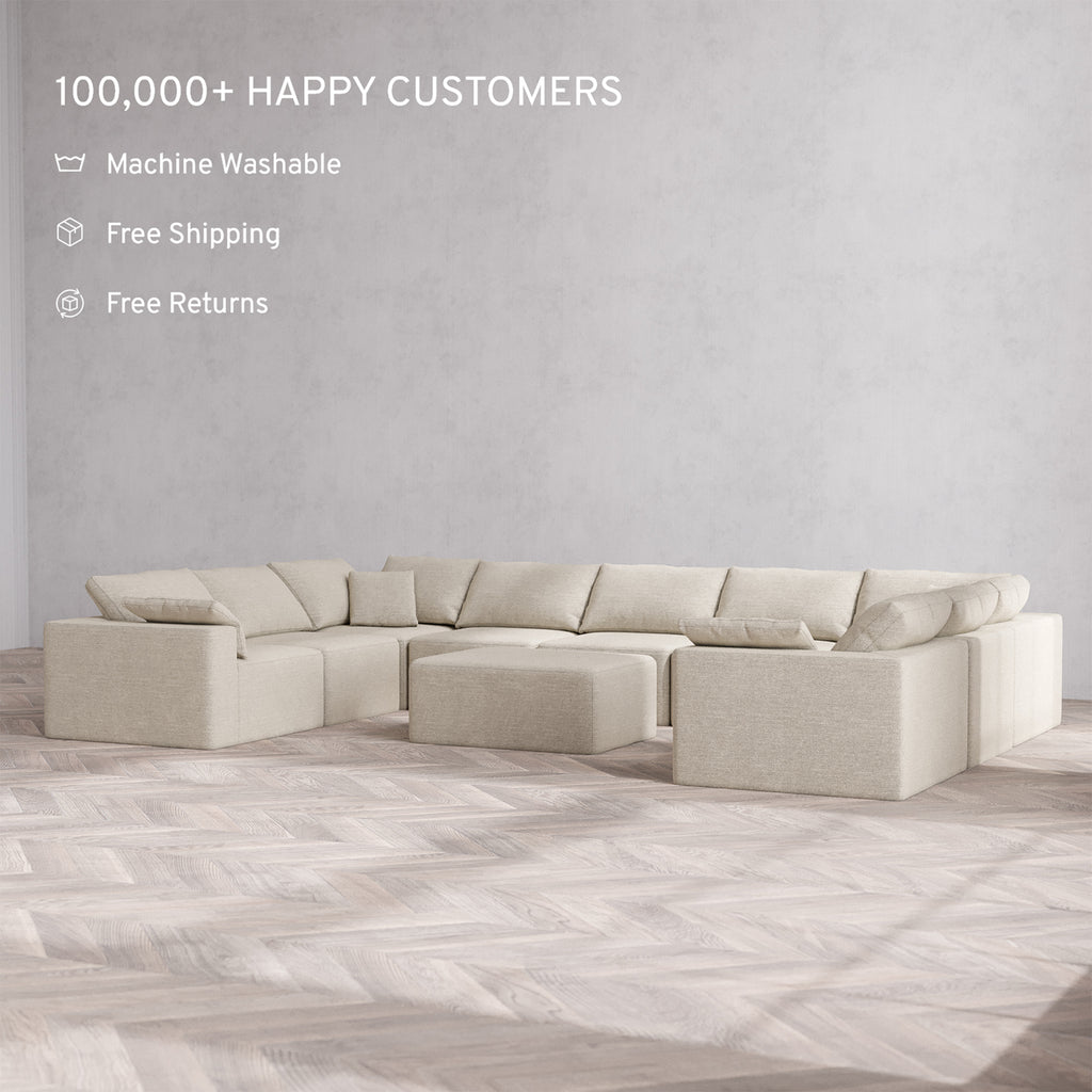 Slipcover Only - Modular Washable 9-Seater U Sectional + Chaise Ottoman Cloud Sofa in Sandstone