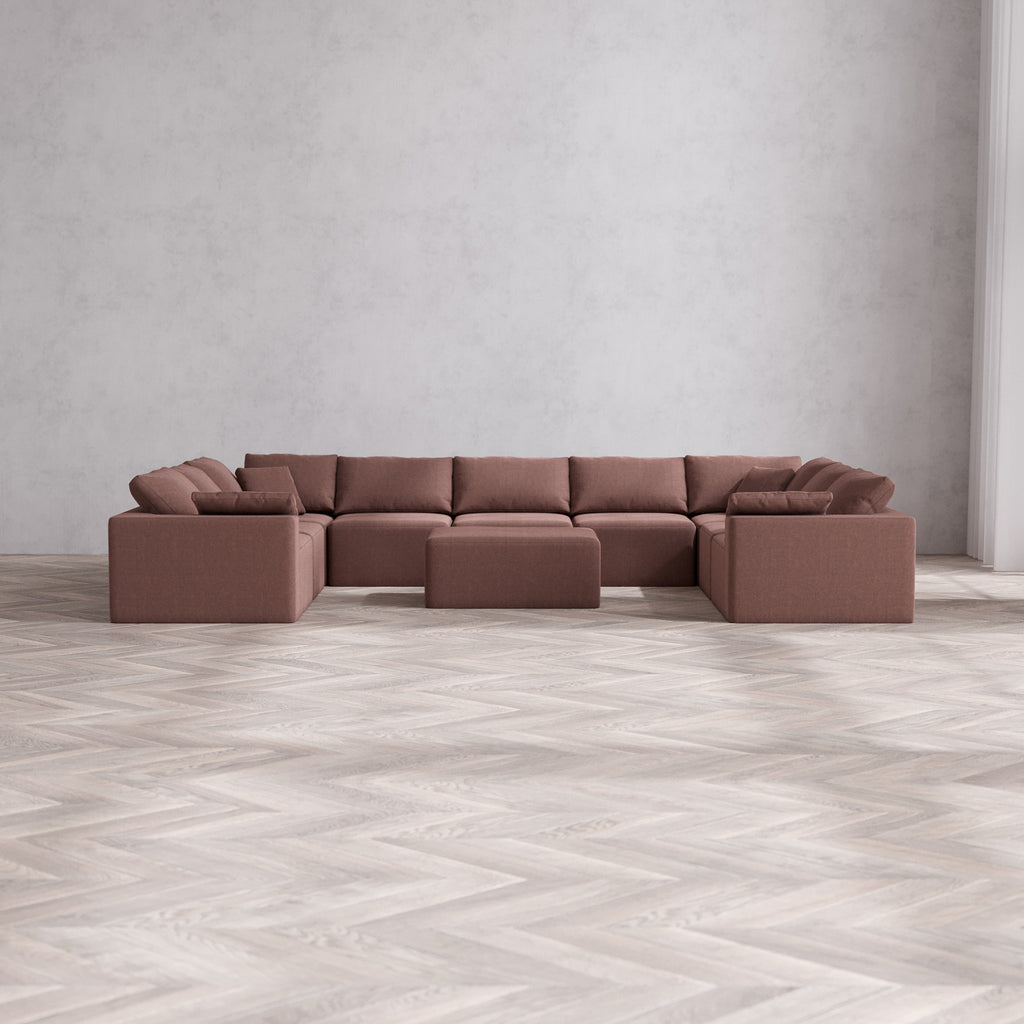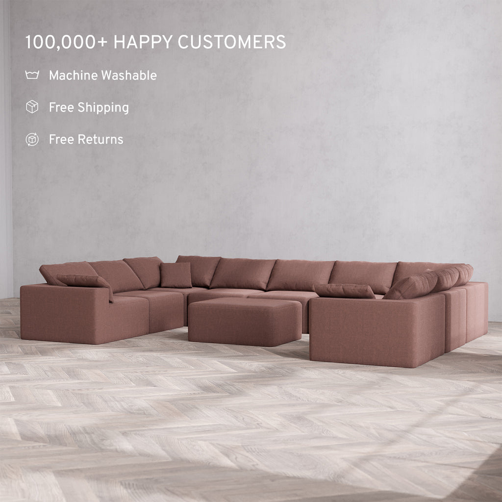 Slipcover Only - Modular Washable 9-Seater U Sectional + Chaise Ottoman Cloud Sofa in Sumac