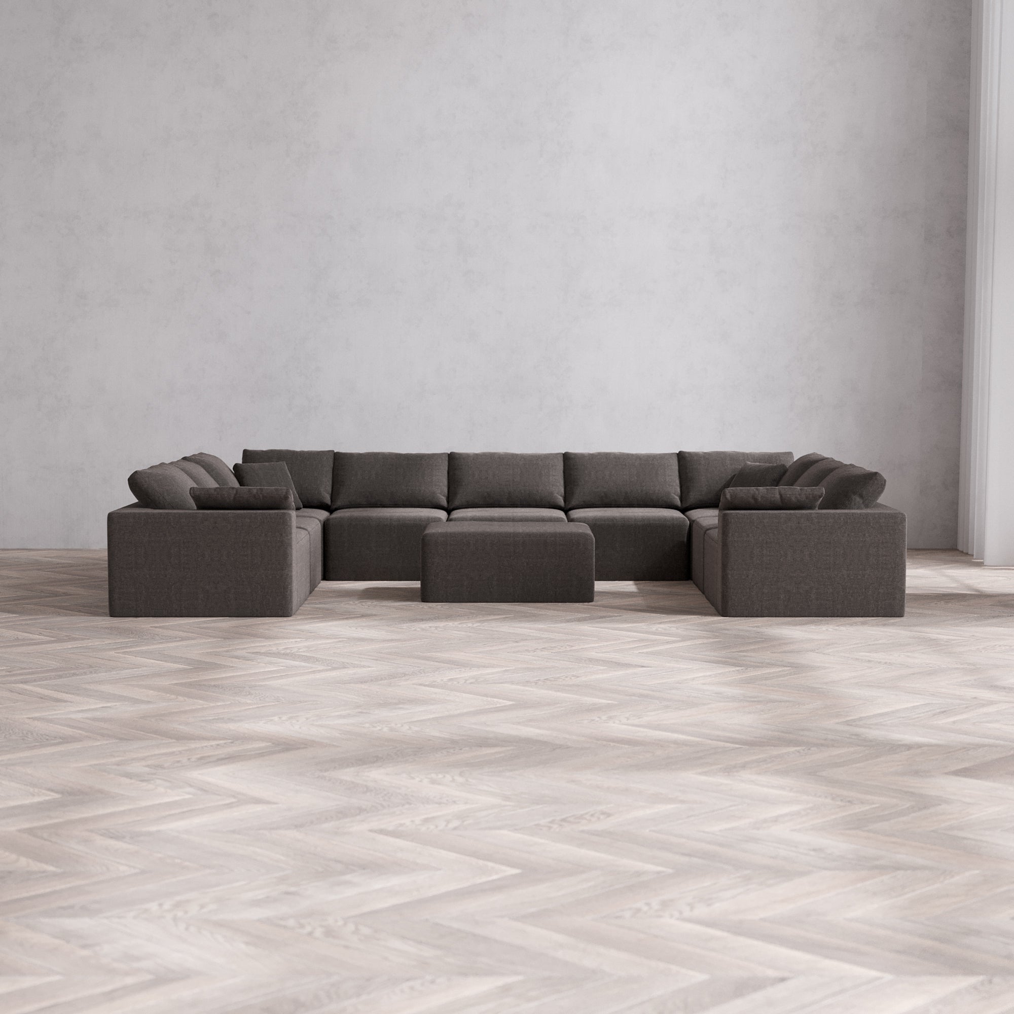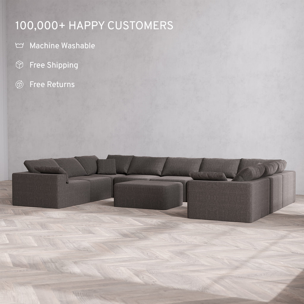 Slipcover Only - Modular Washable 9-Seater U Sectional + Chaise Ottoman Cloud Sofa in Truffle