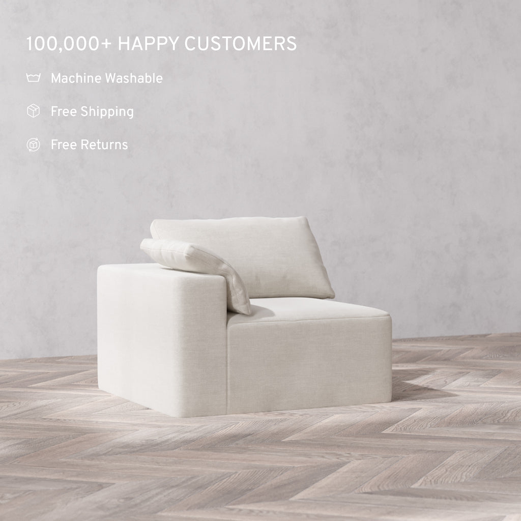 Machine Washable: From the outer slipcovers to the internal quilted duvet, every fabric component is fully removable and machine washable. It’s the only Cloud-style sofa designed for effortless, full-depth cleaning.