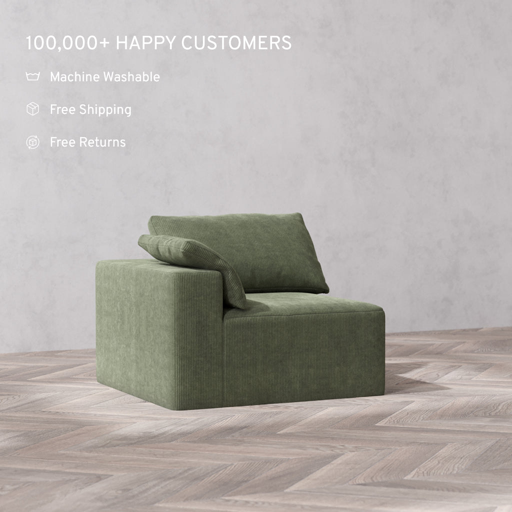 Slipcover Only - Modular Washable End Chair Cloud + Bolster Sofa in Juniper | Left-Facing Arm