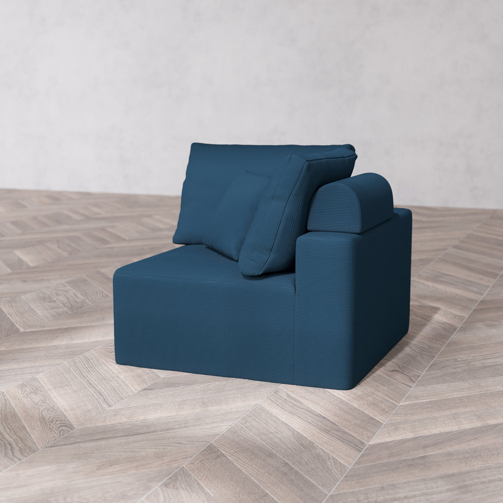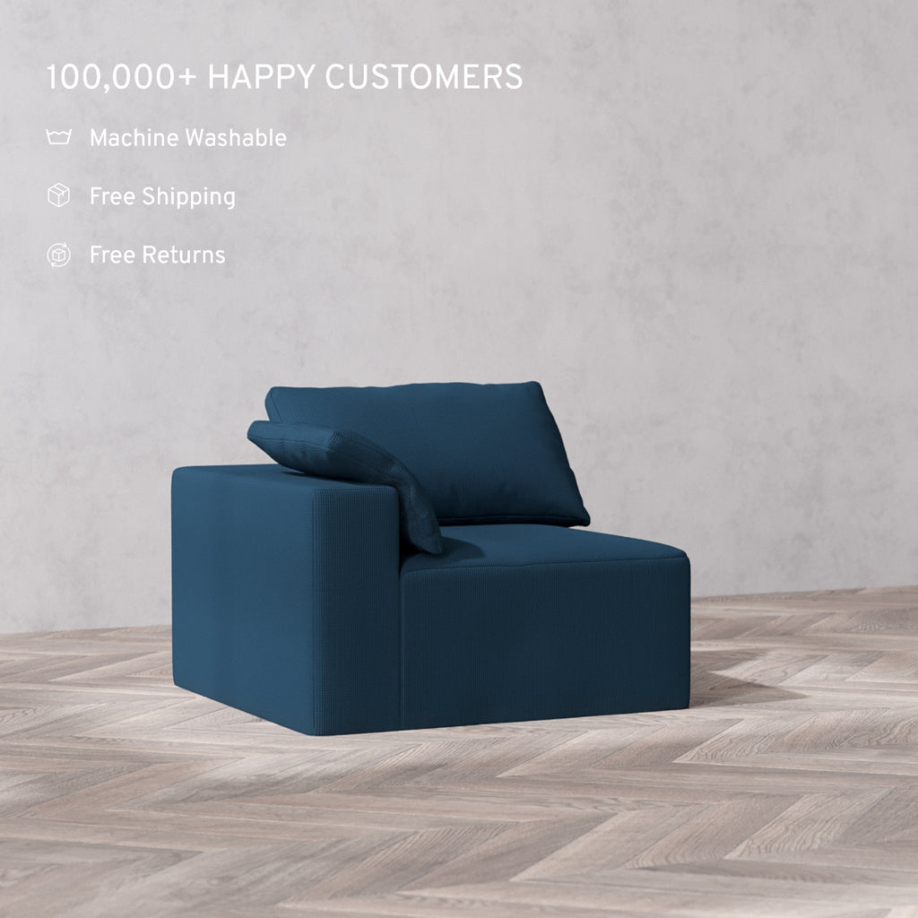 Slipcover Only - Modular Washable End Chair Cloud + Bolster Sofa in Lazuli | Left-Facing Arm