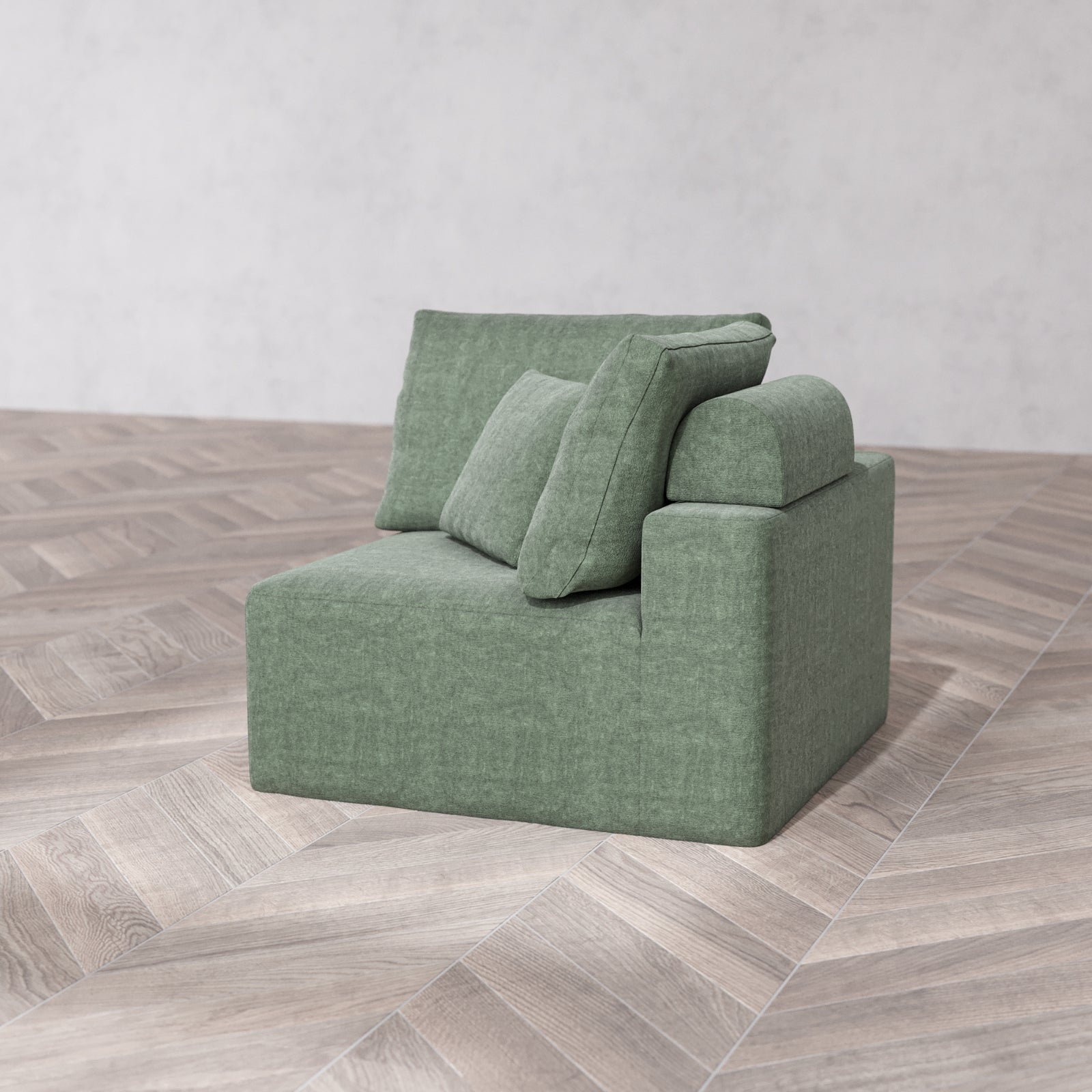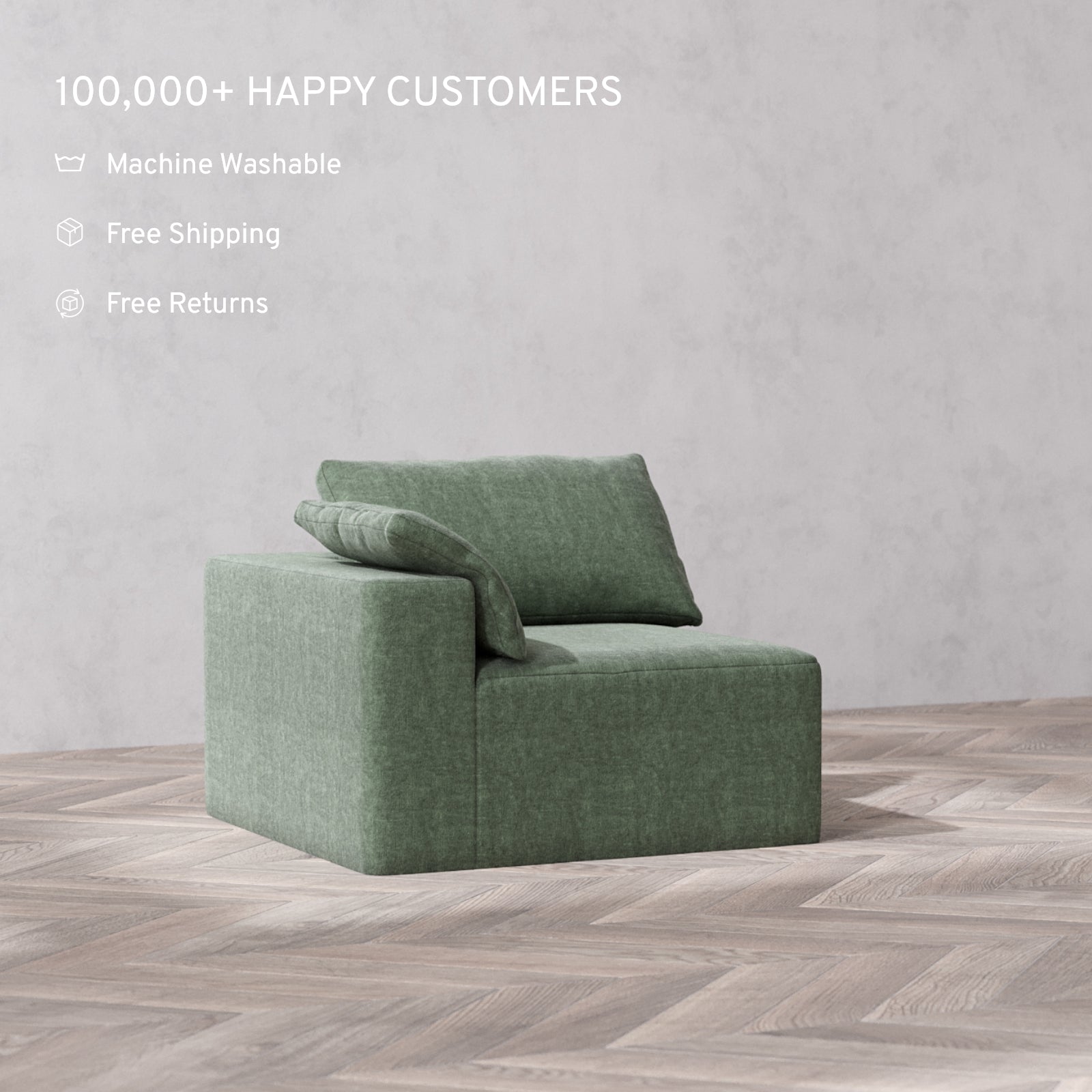 Slipcover Only - Modular Washable End Chair Cloud + Bolster Sofa in Sage | Left-Facing Arm