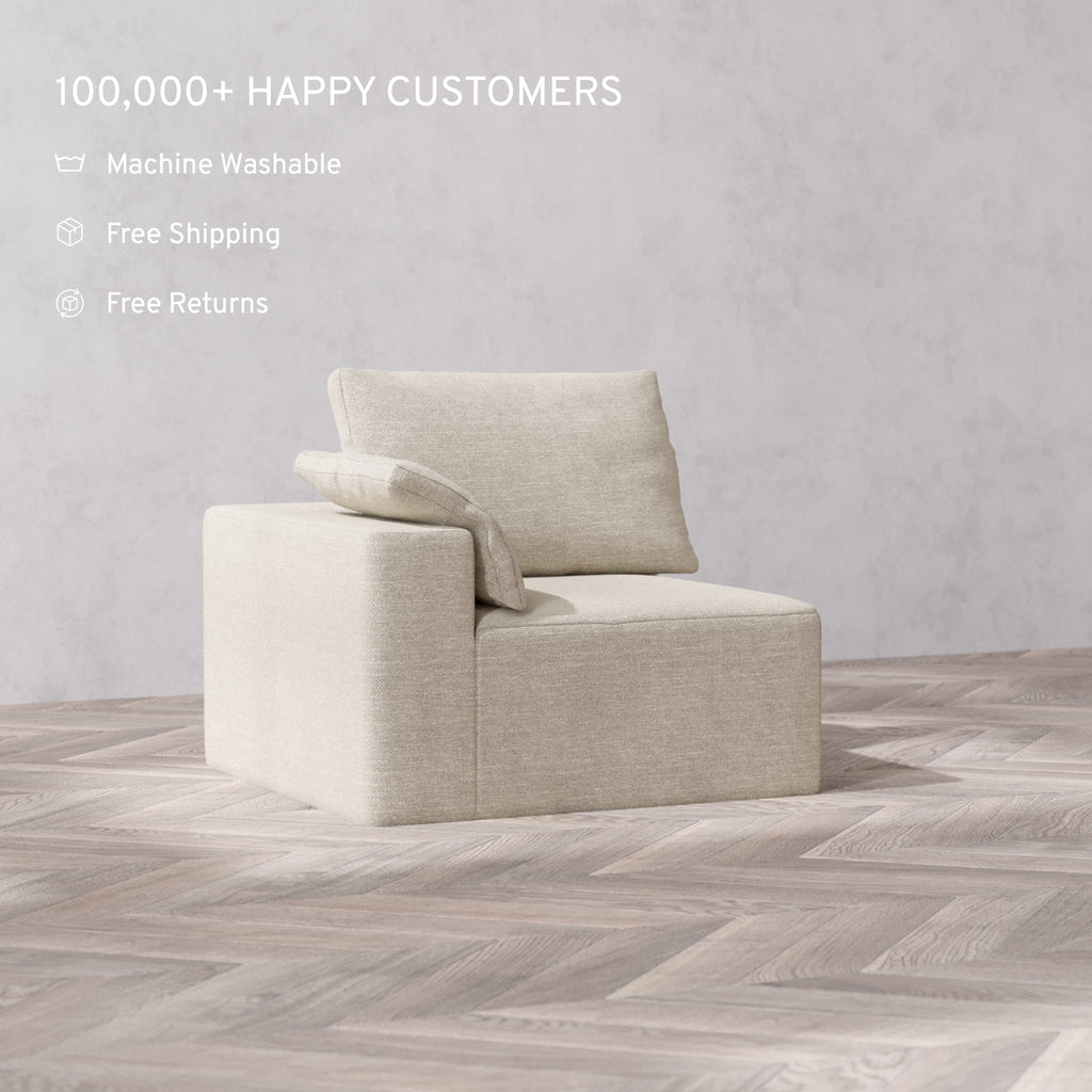 Slipcover Only - Modular Washable End Chair Cloud Sofa in Sandstone | Left-Facing Arm