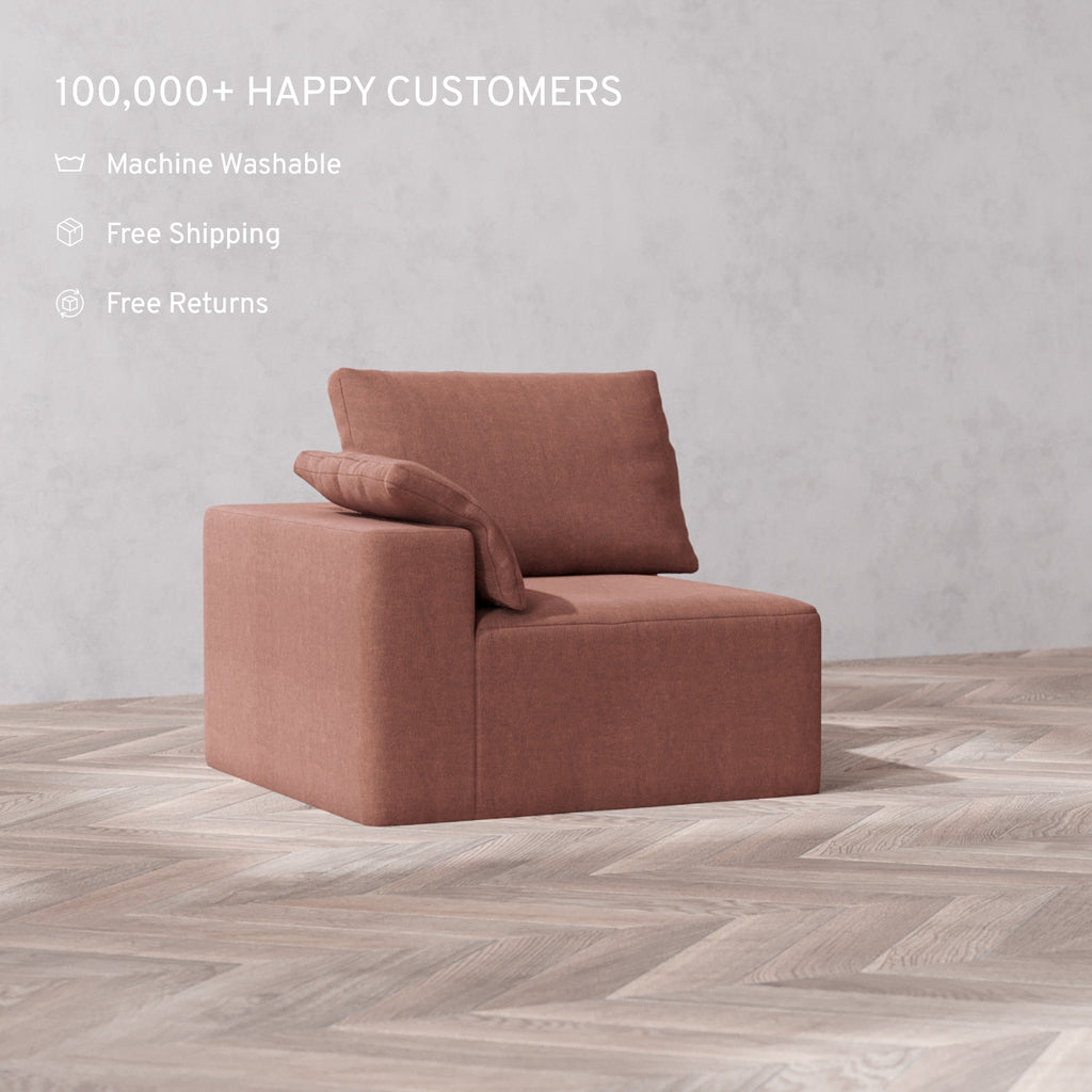 Slipcover Only - Modular Washable End Chair Cloud Sofa in Sumac | Left-Facing Arm