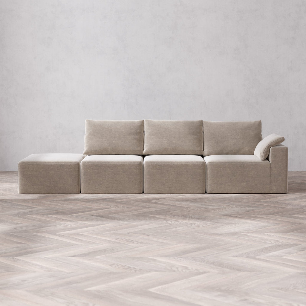Modular Washable 3-Seater Open End Cloud + Bolster Sofa | Right-Facing Arm | Satin Velvet in Caraway