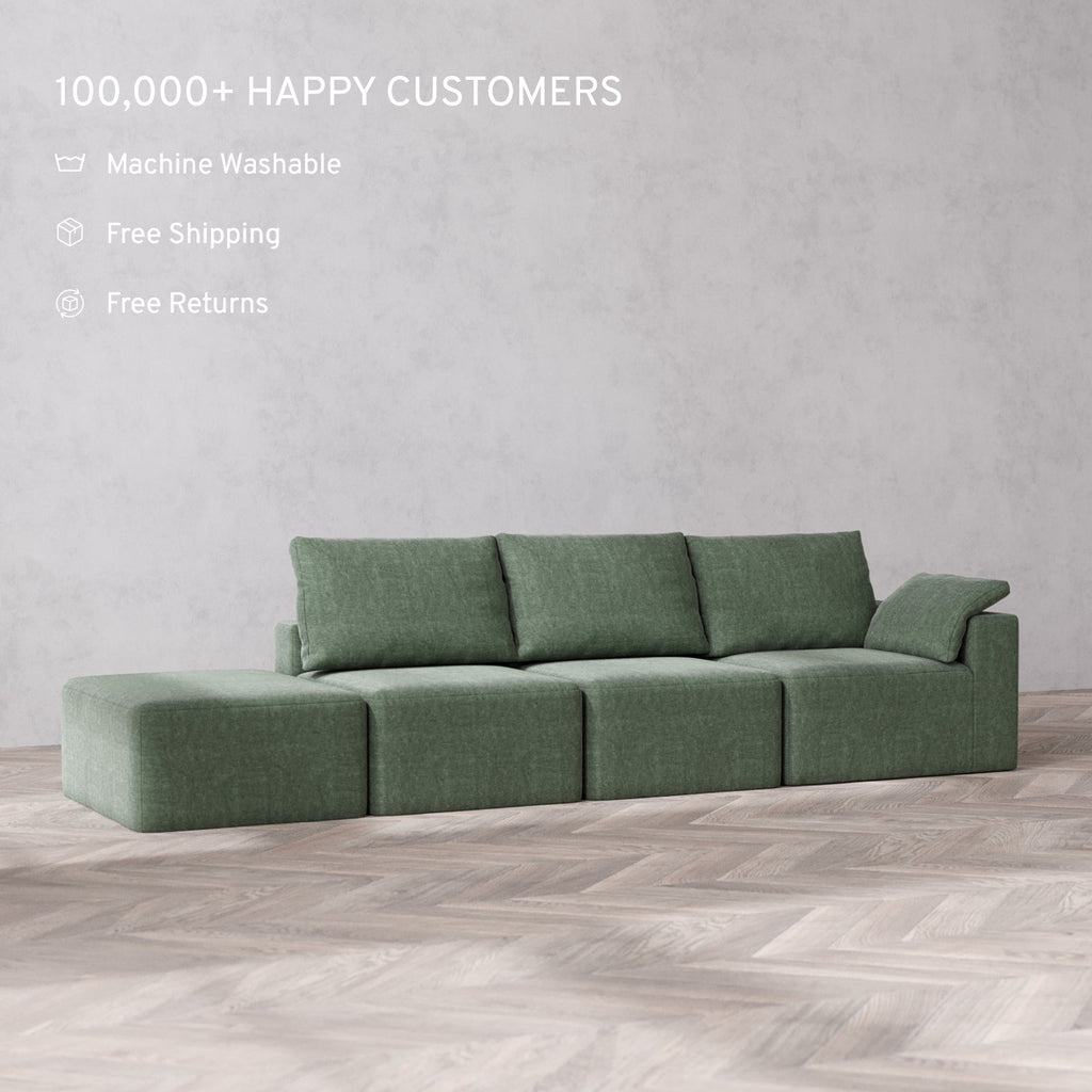 Machine Washable: Every piece of fabric—including the internal quilted duvet—is fully removable and machine washable. It’s the only Cloud-style sofa you can truly deep clean, effortlessly.
