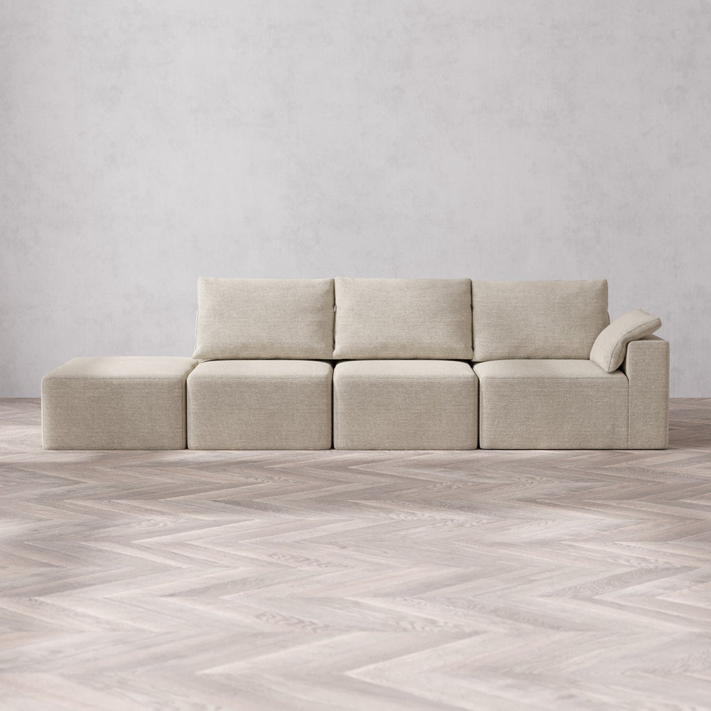 Modular Washable 3-Seater Open End Cloud + Bolster Sofa | Right-Facing Arm | Plush Twill in Sandstone