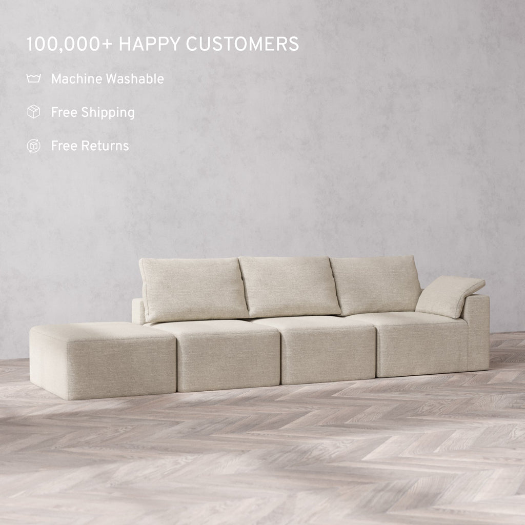 Machine Washable: Every piece of fabric—including the internal quilted duvet—is fully removable and machine washable. It’s the only Cloud-style sofa you can truly deep clean, effortlessly.